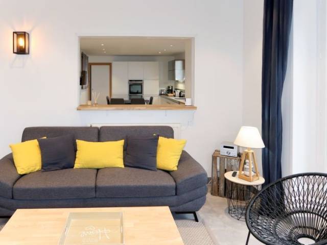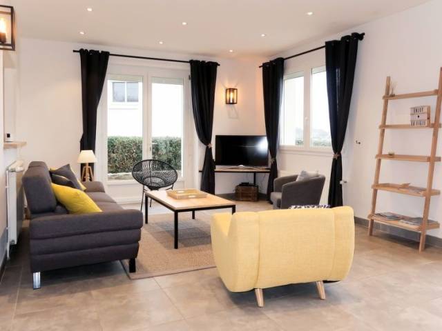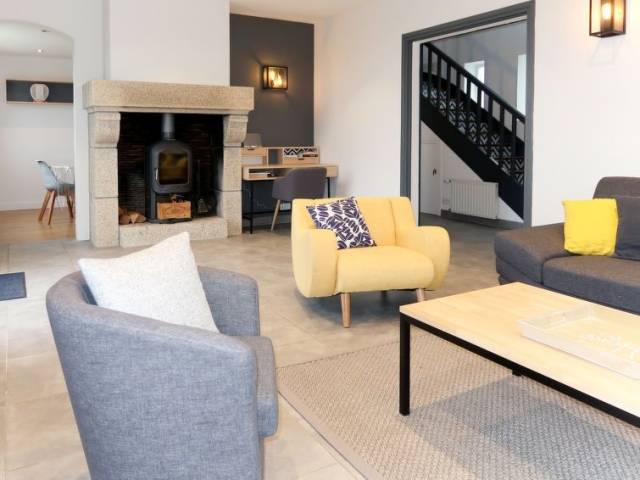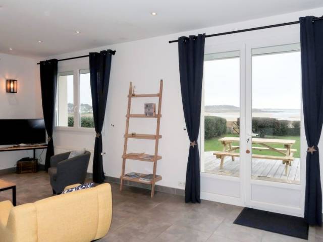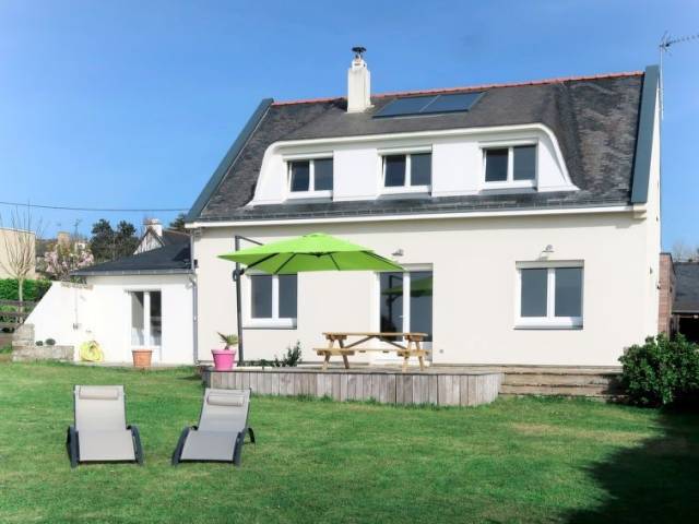 Casa unifamiliar "La Vigie", moderna, bonita, confortable. En el barrio de Saint Julien, a 1 km del centro de Le Pouldu, a 6 km del centro de Clohars-Carnoet, a 13 km del centro de Quimperlé, a 30 m del mar, a 100 m de la playa, acceso directo a la playa, en una calle sin salida. Privado: terreno 900 m2 (vallada), jardín, cuidado con césped y plantas. Trastero a disposición. Aparcamiento (para 2 coches) en el mismo terreno. Tienda 1 km, supermercado 6 km, restaurante 400 m, panadería 1 km, playa de arena "Plage des Grands Sables" 1 km. Campo de golf (18 hoyos) 20 km, escuela de surf 3 km, escuela de vela 1.5 km, rutas de senderismo desde la casa 10 m. Atracciones en los alrededores: Doelan 8 km, Pont Aven 23 km, Concarneau 40 km, Lorient 25 km, Quimper 60 km, Carnac 90 km. "La Vigie (LPU104)", casa 5 estancias 160 m2 en 2 plantas. Reformada en 2018, con mobiliario moderno: salón-comedor con chiminea nórdica, mesa de comedor, TV, equipo de música y DVD. Salida a la terraza. 1 dorm. con 1 cama de matrimonio (160 cm, 200 cm de longitud), TV. Salida a la terraza. Cocina abierta (horno, lavavajillas, 4 Placas de inducción, tostadora, hervidor de agua eléctrico, microondas, congelador, cafetera eléctrica, isla de cocina) con mesa de comedor. Ducha, WC separado. Planta superior: 3 dorm., cada habitación con 1 cama de matrimonio (140 cm, 190 cm de longitud). Baño, WC separado, doble lavabo con bañera esquinera. Calefacción eléctrica. Suelo de parquet. Terraza. Muebles de terraza, barbacoa (portátil), tumbonas (4). Vista panorámica al mar. El alojamiento dispone de: lavadora, secadora, plancha, trona, cuna. Internet (Wifi, gratis). A tener en cuenta: casa para no fumadores. Detector de humo.