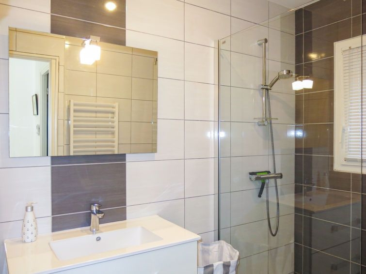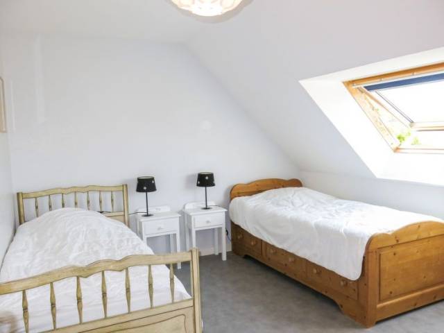 "Les Embruns (RHU100)", casa 5 estancias 100 m2 en 2 plantas. Vivienda adecuada para 7 adultos. Con mobiliario bonito: salón-comedor con TV y canales internacionales. Salida a la terraza. 1 dorm. con 1 cama de matrimonio (160 cm, 200 cm de longitud), ducha/WC. 1 dorm. con 1 cama de matrimonio (140 cm, 190 cm de longitud). Cocina abierta (horno, lavavajillas, 3 Placas de inducción, tostadora, hervidor de agua eléctrico, microondas, congelador, cafetera eléctrica). Ducha, WC separado. Planta superior: 1 dorm., abuhardillado con 2 camas (90 cm, 190 cm de longitud). 1 dorm., abuhardillado con 1 cama de matrimonio (140 cm, 190 cm de longitud). WC separado. Calefacción de gas. Terraza. Muebles de terraza, barbacoa eléctica, tumbonas (4). El alojamiento dispone de: lavadora, secadora, cuna hasta 2 años. Internet (Wifi, gratis). A tener en cuenta: detector de humo. La disponibilidad de las camas es flexible. Aunque haya más camas disponibles que la ocupación máxima, esta no se puede exceder.