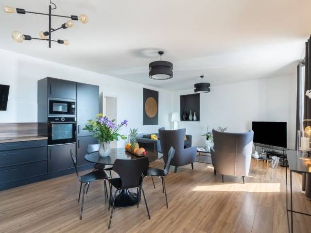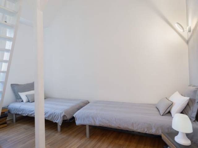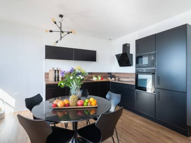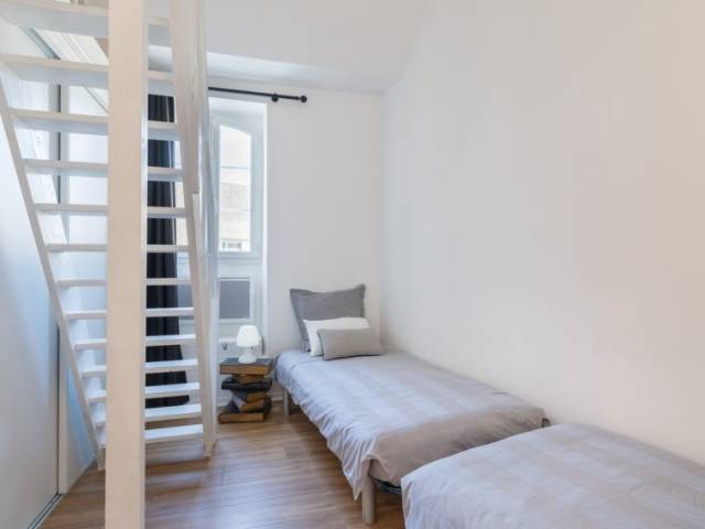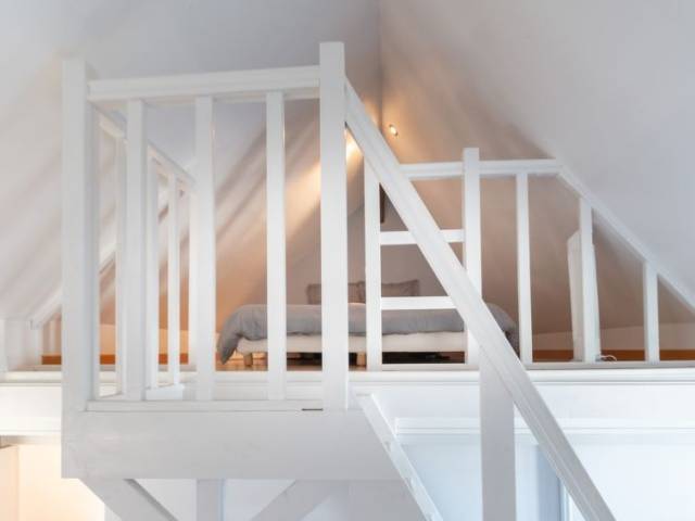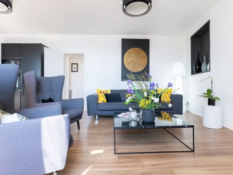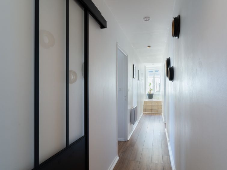 "Ô de Mer (ETL300)", apartamento de 3 estancias 80 m2 en 2 plantas en el 1° piso. Vivienda adecuada para 5 adultos. Con mobiliario confortable: salón-comedor con mesa de comedor, TV satélite, canales internacionales, equipo de música y DVD. 1 dorm., ventana al patio con 1 cama de matrimonio (160 cm, 200 cm de longitud). Habitación de paso, ventana al patio con 2 camas (80 cm, 200 cm de longitud). Cocina abierta (horno, lavavajillas, 3 Placas de inducción, tostadora, hervidor de agua eléctrico, microondas, congelador, cafetera eléctrica, Cápsulas de café (NESPRESSO) extra). Ducha, WC separado. Planta superior: (escalera empinada) altillo con 1 cama doble (2 x 80 cm, 190 cm de longitud), calefacción eléctrica. Suelo de parquet. Vista al mar. El alojamiento dispone de: lavadora, secadora, plancha, cuna. Internet (Wifi, gratis). A tener en cuenta: apartamento para no fumadores. Detector de humo. La disponibilidad de las camas es flexible. Aunque haya más camas disponibles que la ocupación máxima, esta no se puede exceder.