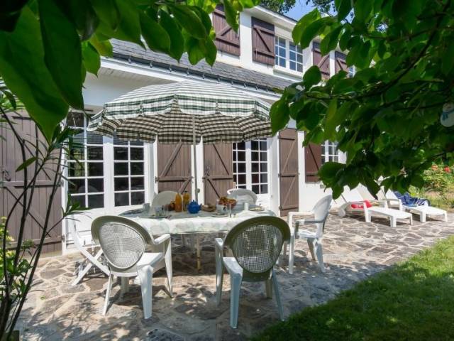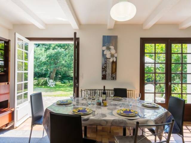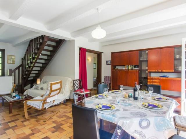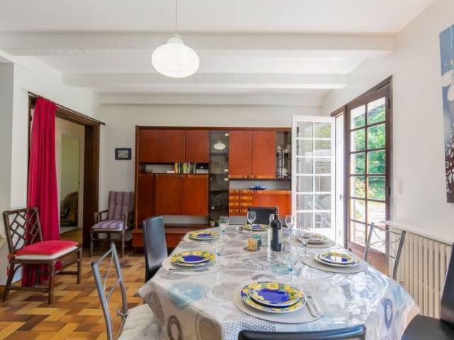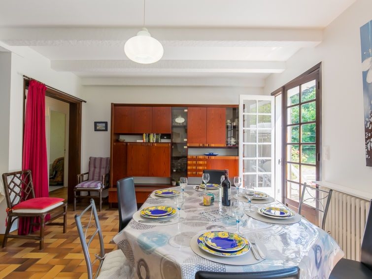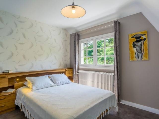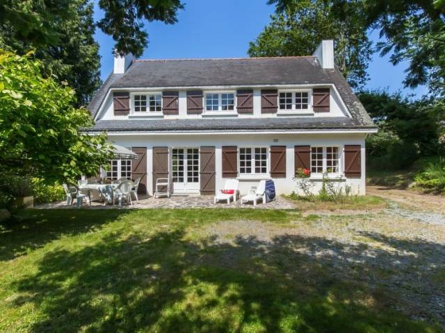 Casa "Bellevue", amplia, agradable. A 1 km del centro de Moëlan-sur-Mer, a 4 km del centro de Clohars-Carnoët, en un barrio residencial, a 4 km del mar, a 4 km de la playa, a 2.5 km de la laguna. Privado: terreno 4'600 m2, parque, jardín grande, cuidado plantas y árboles, estanque natural. Terraza, muebles de jardín, aparcamiento (para 2 coches) en el mismo terreno, garaje individual. Tienda 1 km, supermercado 800 m, restaurante 500 m, panadería 1 km, playa de arena "Plage du Trenez" 6.5 km, laguna 2.5 km. Atracciones en los alrededores: Kerfany les Pins 6.5 km, Le Pouldu 10 km, Pont Aven 12 km, Quimperlé 12 km, Concarneau 30 km, Quimper 50 km. "Bellevue (MSR103)", casa 5 estancias 140 m2 en 2 plantas. Con mobiliario funcional: salón-comedor con mesa de comedor, TV y estufa de lena. Salida a la terraza. 1 dorm. con 1 cama de matrimonio (160 cm, 200 cm de longitud). Cocina (horno, lavavajillas, 3 fuegos, tostadora, hervidor de agua eléctrico, microondas, congelador, cafetera eléctrica) con mesa de comedor. Baño, WC separado. Planta superior: 1 dorm. con 1 cama de matrimonio (140 cm, 190 cm de longitud). 1 dorm. para niños con 1 posibilidad para dormir (1 x 60 cm, 120 cm de longitud). 1 dorm. con 1 cama (90 cm, 190 cm de longitud), 1 cama de matrimonio (120 cm, 190 cm de longitud). 1 dorm. con 1 cama de matrimonio (140 cm, 190 cm de longitud). Ducha, WC separado. Calefacción gasóleo. El alojamiento dispone de: lavadora, secadora. Internet (Wifi, gratis). A tener en cuenta: casa para no fumadores. 1 mascota / perro. Detector de humo.
