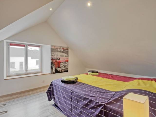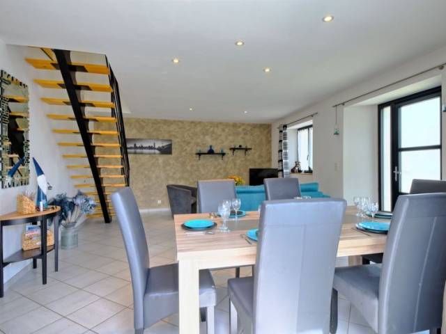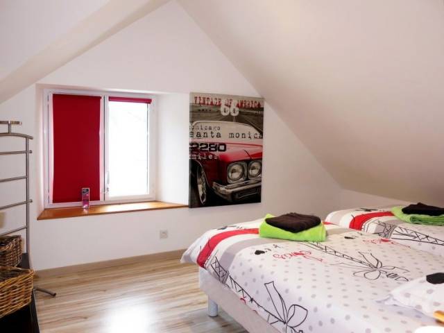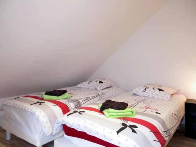 "Le Graffi'Ty (BEE300)", casa 3 estancias 70 m2 en 2 plantas. Con mobiliario confortable y bonito: salón-comedor con mesa de comedor, TV, equipo de música y DVD. Salida a la terraza. Cocina abierta (4 fogones, horno, lavavajillas, 4 fuegos, tostadora, hervidor de agua eléctrico, microondas, congelador, cafetera eléctrica). WC separado. Planta superior: altillo abuhardillado, abierto con 1 sofá-cama (130 cm, 190 cm de longitud). 1 dorm., abuhardillado con 1 cama de matrimonio (160 cm, 200 cm de longitud). 1 dorm., abuhardillado con 2 camas (90 cm, 200 cm de longitud). Baño, WC separado. Calefacción eléctrica. Terraza, orientación sur. Muebles de terraza, barbacoa (portátil). El alojamiento dispone de: lavadora, secadora, plancha, trona, cuna. Internet (Wifi, gratis). A tener en cuenta: casa para no fumadores. 1 mascota / perro. Detector de humo.