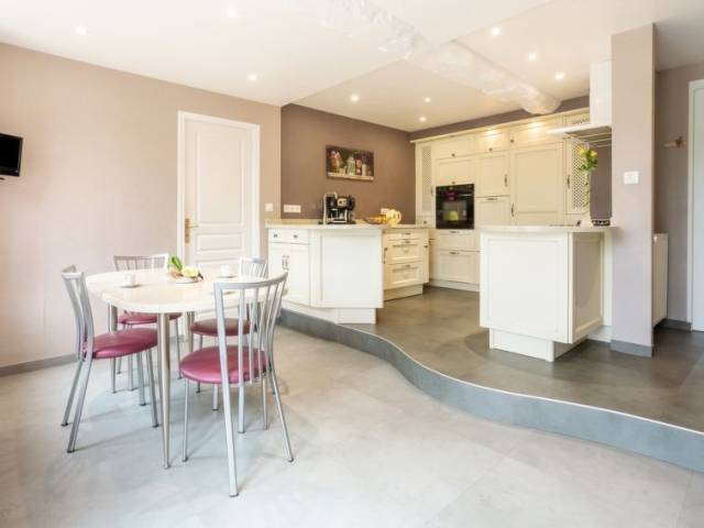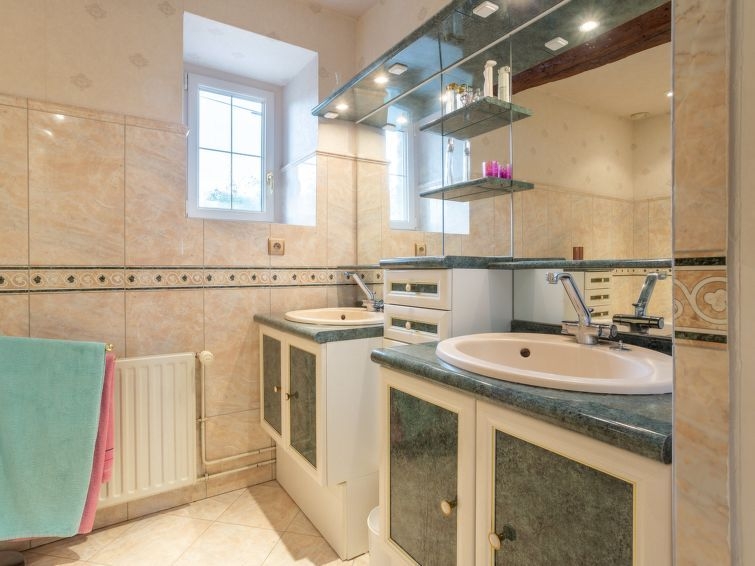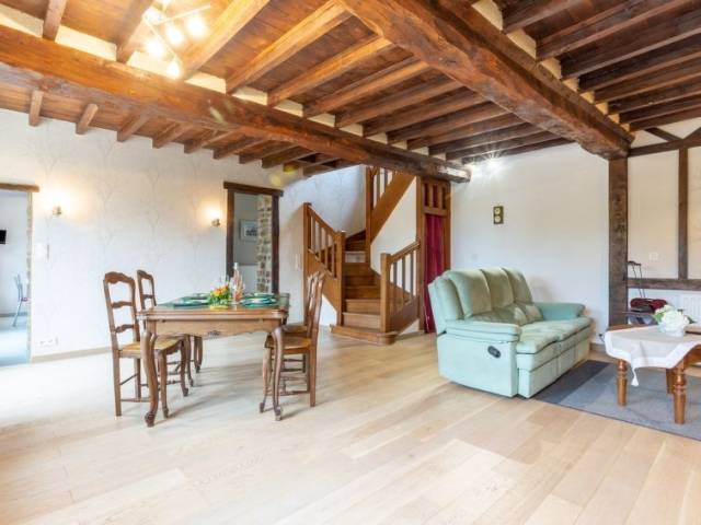 "L´Aumônerie (CDU400)", casa 4 estancias 130 m2 en 2 plantas. Con mobiliario bonito y agradable: salón-comedor grande con chimenea (sólo con función decorativa), mesa de comedor, TV y radio. Cocina (lavavajillas, 2 placas de vitrocerámica, 2 fuegos, tostadora, hervidor de agua eléctrico, microondas, cafetera eléctrica, horno Raclette, set de Fondue (queso)) con mesa de comedor, TV y calefacción eléctrica. Salida a la terraza. WC separado. Planta superior: 3 dorm. (1 x 140 cm, 190 cm de longitud). Baño/ducha, WC separado, doble lavabo. Calefacción gasóleo. Terraza. Muebles de terraza, barbacoa (portátil), trastero. El alojamiento dispone de: lavadora, secadora, plancha. Internet (Wifi). A tener en cuenta: casa para no fumadores.