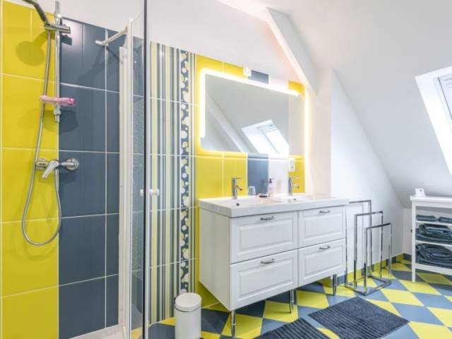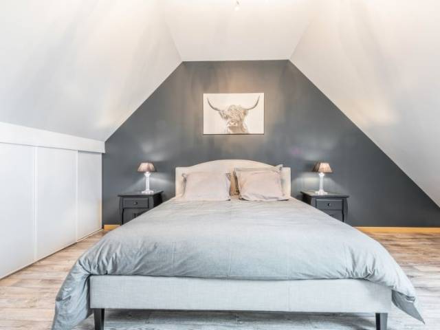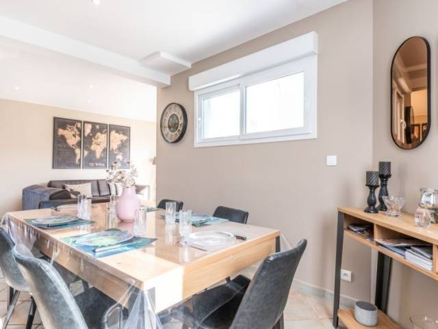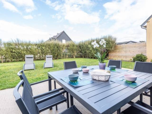 "Blue House (BAY403)", casa 4 estancias 130 m2 en 2 plantas. Con mobiliario moderno y agradable: salón-comedor con mesa de comedor y TV satélite. Salida a la terraza. 1 dorm. con 1 cama de matrimonio (160 cm), ducha. Salida a la terraza. Cocina abierta (horno, lavavajillas, 4 Placas de inducción, tostadora, hervidor de agua eléctrico, microondas, congelador, cafetera eléctrica) con pequena mesa de comedor. Salida al jardín. WC separado. Planta superior: 1 dorm., abuhardillado con tragaluz con 1 cama de matrimonio (160 cm). 1 dorm., abuhardillado con tragaluz con 2 camas. Altillo abuhardillado, abierto. Ducha/WC. Calefacción eléctrica. Terraza. Muebles de terraza, barbacoa (portátil), tumbonas (4), trastero. El alojamiento dispone de: lavadora, secadora, trona, cuna. Internet (Wifi, gratis). A tener en cuenta: casa para no fumadores. Permitido máximo 1 mascota / perro. Detector de humo.