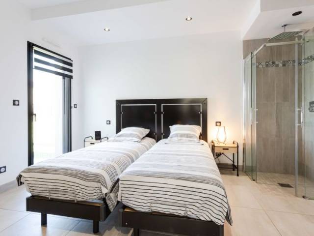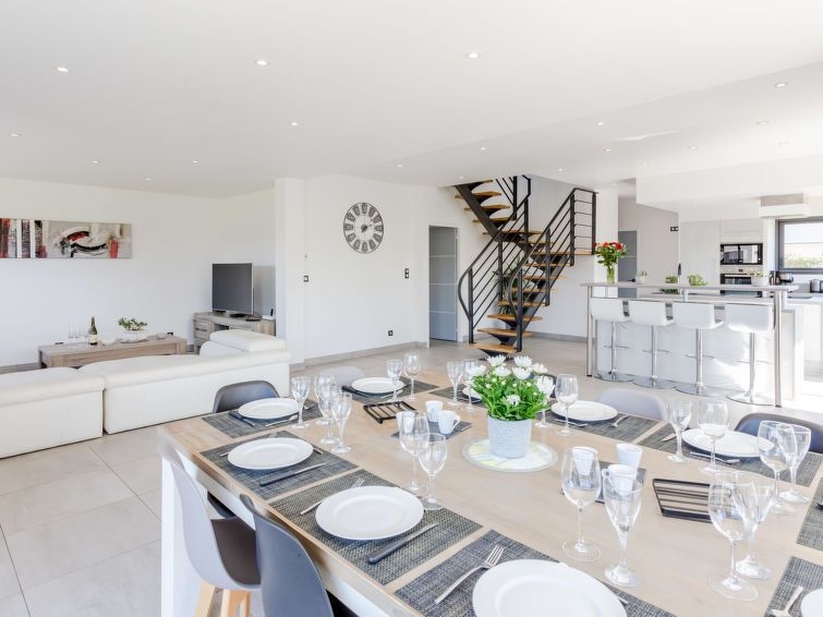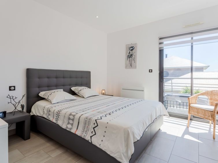 "Pirou Beach (PIP402)", casa 6 estancias 166 m2 en 2 plantas. Luminoso, con mobiliario moderno y de buen gusto: salón-comedor con mesa de comedor, TV y DVD. Salida a la terraza. 1 dorm. con 2 camas, lavabo, WC separado y ducha. Salida al jardín. Cocina abierta (horno, lavavajillas, 3 Placas de inducción, tostadora, hervidor de agua eléctrico, microondas, congelador, cafetera eléctrica). Salida a la terraza. WC separado. Planta superior: 1 dorm. con 2 camas. 3 dorm., cada habitación con 1 cama de matrimonio (160 cm). Ducha, WC separado, doble lavabo. Calefacción eléctrica. Terraza. Muebles de terraza, barbacoa (portátil), tumbonas (6), trastero. El alojamiento dispone de: lavadora, plancha, trona, cuna. Internet (Wifi, gratis). A tener en cuenta: casa para no fumadores. Permitido máximo 2 mascotas / perros. Si el número de personas que ocupan la casa vacacional fuera inferior al máximo posible, no todos los dormitorios estarán disponibles.