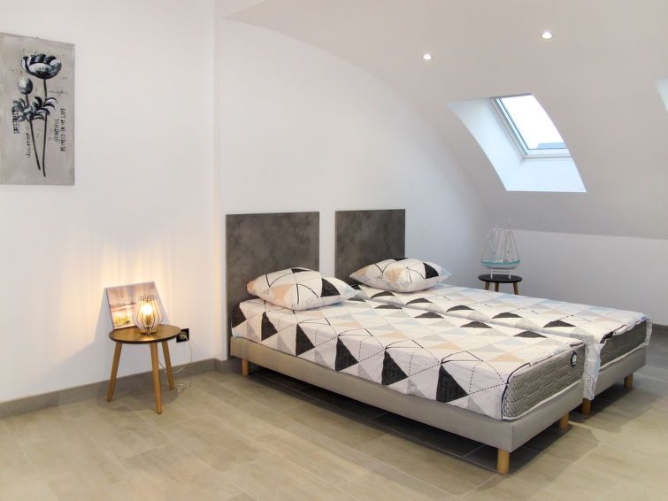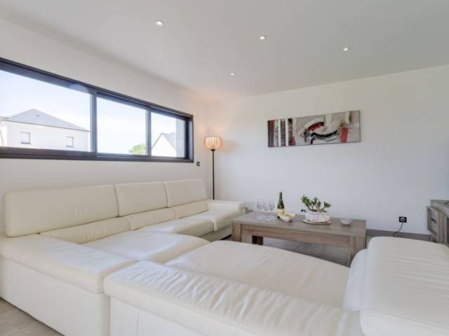 Casa unifamiliar "Pirou Beach", moderna del año 2018. A 4 km del centro de Pirou-Plage, a 6 km del centro de Créances, a 18 km del centro de Coutances, area residencial (villas), a 350 m del mar, en una calle sin salida. Privado: terreno 520 m2 (vallada) con césped. En el inmueble: sala para guardar bicicleta. Aparcamiento (para 3 coches) en el mismo terreno. Tienda 1 km, supermercado 6 km, restaurante 1 km, playa de arena 350 m. El balcón no es accesible.