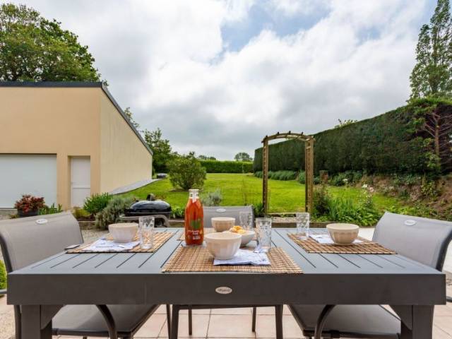 Casa adosada "Cannelle", rústica, adosada por un lado. En un aldea, a 1.5 km del centro de Bolleville, a 4 km del centro de La Haye, a 9 km del mar. Privado: terreno 1'000 m2 con césped. En el inmueble: sala para guardar bicicleta. Aparcamiento en el mismo terreno. Tienda 4 km, supermercado 3 km, playa de arena 9 km. Residencia con puertas de cierre eléctrico.