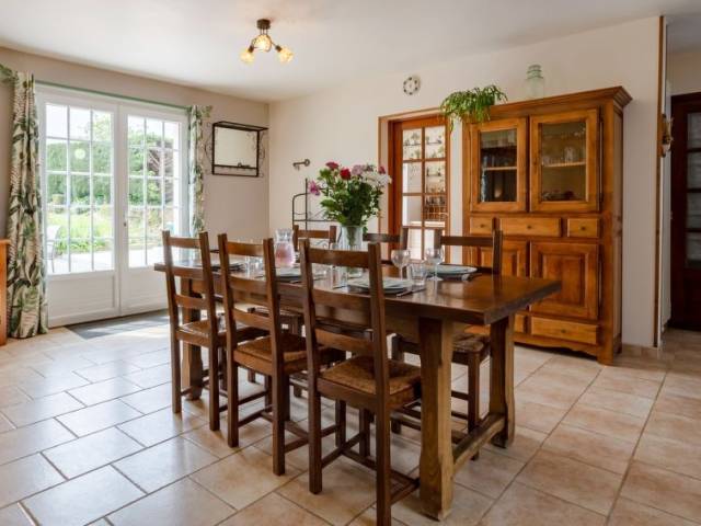 "Cannelle (LLE400)", casa 4 estancias 130 m2 en 2 plantas. Con mobiliario funcional y rústico: salón-comedor con chimenea, mesa de comedor, TV, radio y DVD. Salida a la terraza. Cocina (horno, lavavajillas, 4 placas de vitrocerámica, tostadora, hervidor de agua eléctrico, microondas, congelador, cafetera eléctrica). WC separado. Planta superior: 1 dorm., abuhardillado con 2 camas (90 cm, 190 cm de longitud). 2 dorm., abuhardillados, cada habitación con 1 cama de matrimonio (140 cm, 190 cm de longitud). WC separado, baño/ducha/WC. Calefacción gasóleo. Terraza. Muebles de terraza, barbacoa (portátil), tumbonas (3), trastero. El alojamiento dispone de: lavadora, plancha, trona, cuna. Internet (Wifi, gratis). A tener en cuenta: casa para no fumadores. Permitido máximo 2 mascotas / perros.