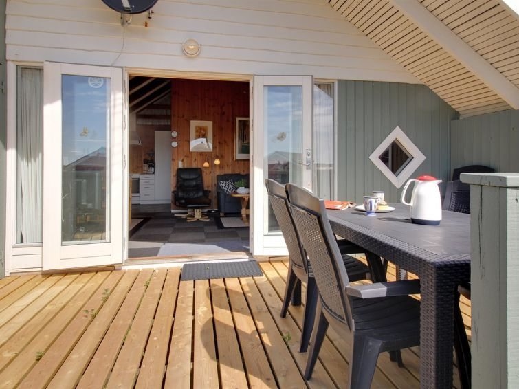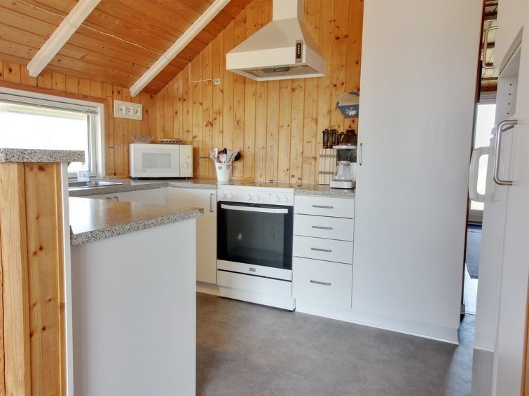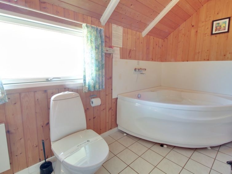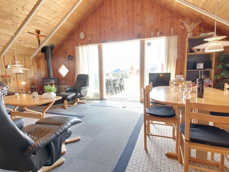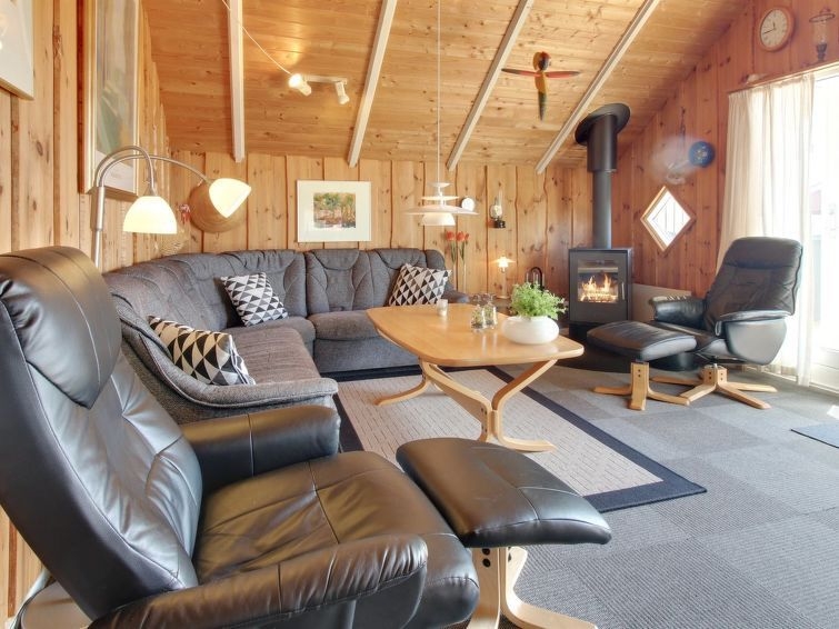 "Sofie" - 150m from the sea in Western Jutland", casa 3 estancias 80 m2. Vivienda adecuada para 8 adultos + 1 niño. Salón con TV, radio, CD, equipo de música y DVD. 1 dorm. con 1 cama doble. 1 dorm. con 2 camas. 1 dorm. con 2 x 2 literas. Cocina (4 fogones, horno, lavavajillas, microondas, congelador). Ducha/WC. Planta superior: altillo abierto. Terraza 12 m2, cubierta. El alojamiento dispone de: trona. Internet (Wifi). A tener en cuenta: apartamento para no fumadores. Permitido máximo 1 mascota / perro.