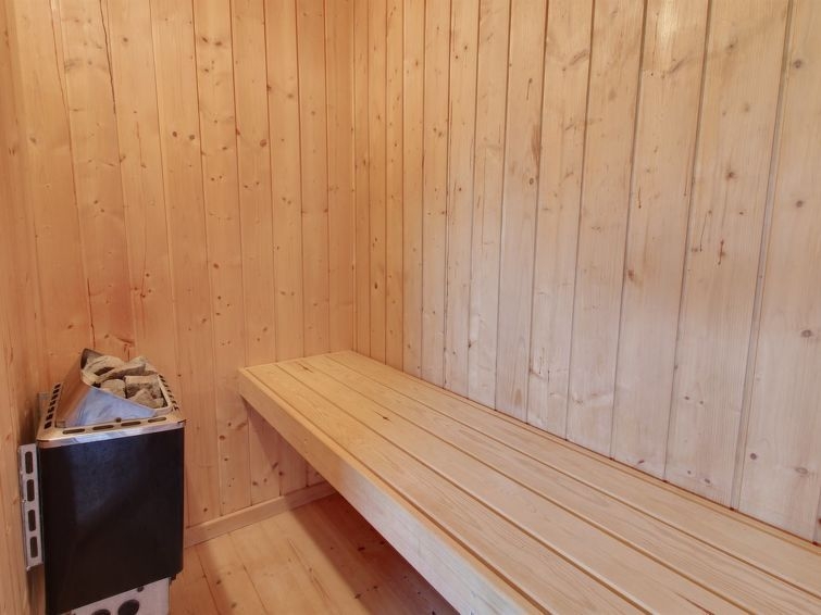 Casa unifamiliar del año 1995. A 150 m del mar. Privado: terreno en estado natural 950 m2. Terraza (35 m2), barbacoa, parque infantil (columpio). En el inmueble: sauna, lavadora. Tienda de comestibles 3 km. Campo de golf 12 km. El propietario no acepta grupos de adolescentes/jóvenes.
