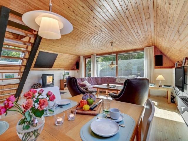 "Indira" - 500m from the sea in Djursland and Mols", casa 2 estancias 80 m2. Vivienda adecuada para 4 adultos + 1 niño. Salón con TV, radio y DVD. 1 dorm. con 1 cama doble. 1 dorm. con 2 camas. Cocina (horno, 4 placas de vitrocerámica, microondas, congelador). Ducha/WC. El alojamiento dispone de: trona, cuna (extra). Internet (Wifi). A tener en cuenta: apartamento para no fumadores.