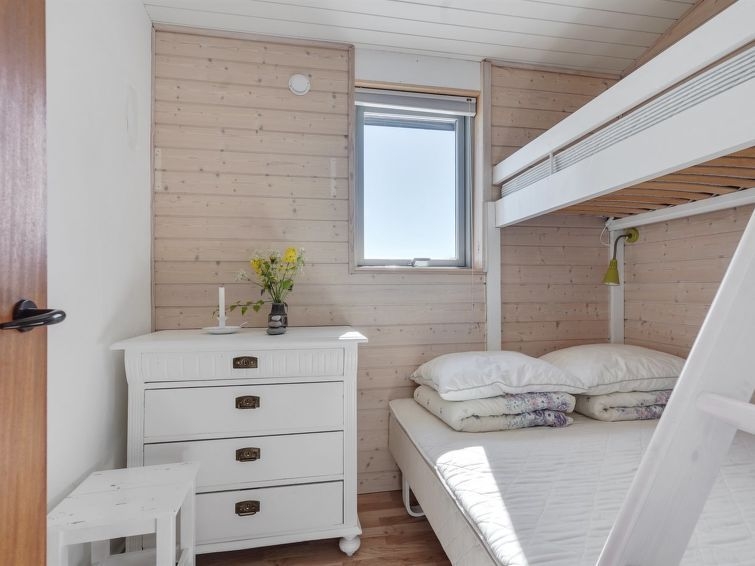 "Felis" - 200m from the sea in NW Jutland", casa 3 estancias 75 m2. Vivienda adecuada para 6 adultos. Salón con TV y radio. 1 dorm. con 1 cama doble. 1 dorm. con 2 x 2 literas. 1 dorm. con 2 x 2 literas. Cocina (horno, lavavajillas, 4 placas de vitrocerámica, microondas, congelador). Ducha/WC. El alojamiento dispone de: trona. Internet (Wifi). A tener en cuenta: apartamento para no fumadores.