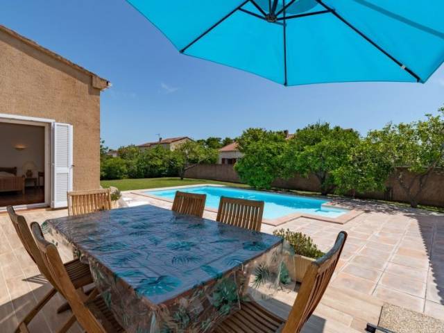 Abbazia a 6 km de Ghisonaccia: Casa unifamiliar "Casella", bonita, agradable. En el aldea Abbazia, a 6 km del centro de Ghisonaccia, a 70 km del centro de Porto Vecchio, a 100 km del centro de Bastia, en un barrio residencial, a 7 km del mar. Privado: jardín 1'200 m2 (vallado) con árboles, pradera, terreno con árboles frutales, piscina (8 x 5 m, Disponible por temporada: 01.May. - 31.Oct.). Ducha exterior, casita de piscina con nevera, terraza, barbacoa, mantenimiento de la piscina a través del propietario/jardinero aparcamiento (para 2 coches) en el mismo terreno. Supermercado 200 m, playa de arena "Plage de Quercioni, Calzarello" 7 km. A tener en cuenta: coche recomendable.
