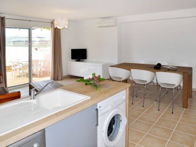 "Marina di Santa Giulia (PVC551)", apartamento de 3 estancias 60 m2. Con mobiliario bonito: salón-dormitorio con 1 sofá-cama doble (2 x 80 cm, 190 cm de longitud), mesa de comedor y TV (pantalla plana). Salida al balcón, a la terraza. 2 dorm., cada habitación con 2 camas (90 cm, 190 cm de longitud). Cocina abierta (horno, lavavajillas, 4 placas de vitrocerámica, tostadora, hervidor de agua eléctrico, microondas, cafetera eléctrica). Ducha, WC separado. Calefacción eléctrica, aire acondicionado. Balcón o terraza parcialmente cubierta. Muebles de terraza, barbacoa. Vista al jardín y al paisaje. El alojamiento dispone de: lavadora, caja fuerte, plancha. A tener en cuenta: adecuado para familias. Apartamento para no fumadores. Detector de humo. Oferta de un propietario comercial según el art. 155, IV, CGI