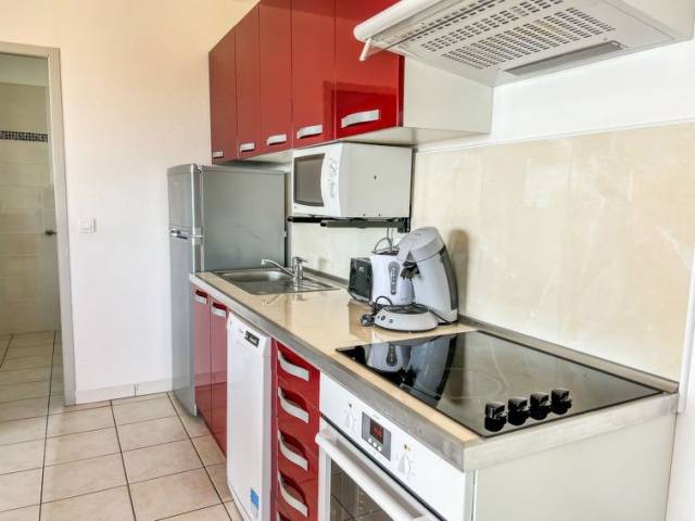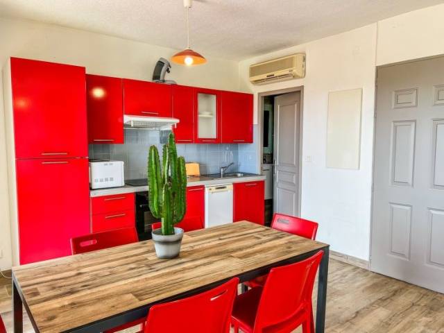 "T2 vue mer (PVC513)", apartamento de 2 estancias 42 m2. Con mobiliario bonito y moderno: salón-dormitorio con 1 sofá-cama doble (160 cm), mesa de comedor y TV satélite. 1 dorm. con 1 cama de matrimonio (160 cm). Rincón-cocina (horno, lavavajillas, 2 placas de vitrocerámica, tostadora, microondas, cafetera eléctrica). Ducha/WC. Calefacción eléctrica, aire acondicionado. Terraza. Muebles de terraza, barbacoa. Vista panorámica bonita al mar, a la bahía y Ile San Ciprianu. El alojamiento dispone de: caja fuerte. A tener en cuenta: adecuado para familias. Apartamento para no fumadores. Detector de humo. Oferta de un propietario comercial según el art. 155, IV, CGI