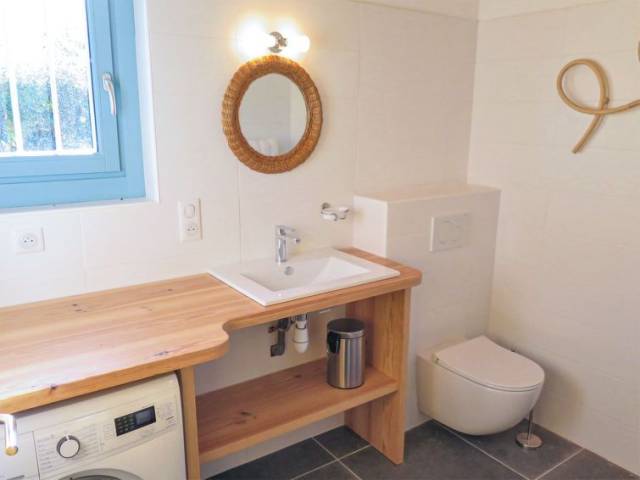 Casa 3 estancias 60 m2. Vivienda adecuada para 2 adultos + 2 niños. Luminoso, con mobiliario confortable y de buen gusto: salón-comedor grande con mesa de comedor y TV (pantalla plana). Salida a la terraza. 1 dorm. con 1 cama de matrimonio (160 cm, 200 cm de longitud). 1 dorm. con 2 camas (90 cm, 190 cm de longitud). Cocina abierta (horno, lavavajillas, 3 placas de vitrocerámica, tostadora, hervidor de agua eléctrico, microondas, congelador, cafetera eléctrica). Ducha/WC. Calefacción eléctrica. Terraza pequeña. Muebles de terraza, barbacoa (portátil), tumbonas (2). Vista bonita al paisaje. El alojamiento dispone de: lavadora, plancha, trona, cuna (extra). A tener en cuenta: casa para no fumadores. Permitido máximo 1 mascota pequeña / perro. Detector de humo.