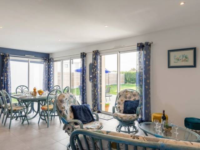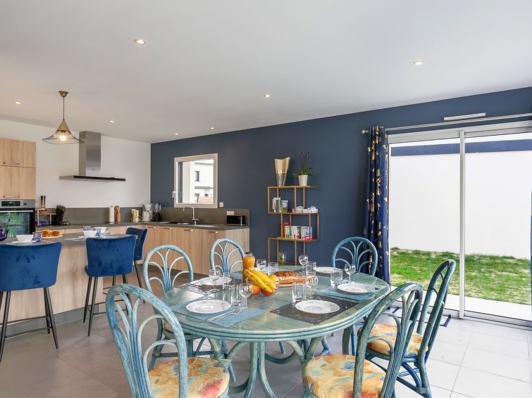 "Villa Kerlina", casa 4 estancias 104 m2. Luminoso, con mobiliario confortable y de buen gusto: salón-comedor 40 m2, grande con TV (pantalla plana). Salida a la terraza. 1 dorm. con 1 cama de matrimonio (160 cm, 200 cm de longitud). 1 dorm. con 2 camas (90 cm, 200 cm de longitud). 1 dorm. con 1 cama de matrimonio (160 cm, 200 cm de longitud). Salida a la terraza. Cocina abierta (horno, lavavajillas, 4 Placas de inducción, tostadora, hervidor de agua eléctrico, microondas, congelador, cafetera eléctrica). Ducha/WC, WC separado, doble lavabo. Calefacción eléctrica, calefacción por suelo. Orientación suroeste. Muebles de terraza, barbacoa. El alojamiento dispone de: lavadora, plancha, cuna hasta 2 años, secador de pelo. Internet (Wifi, gratis). A tener en cuenta: casa para no fumadores. Detector de humo.