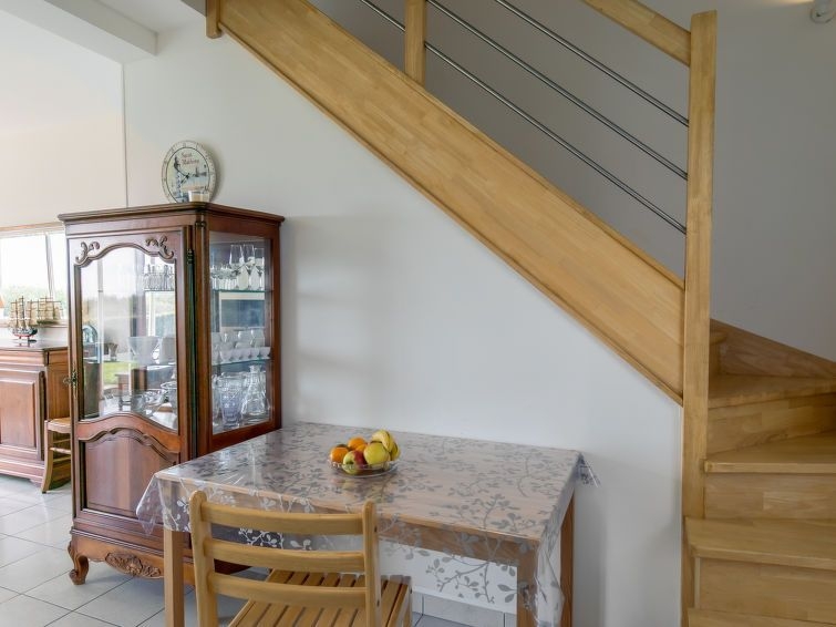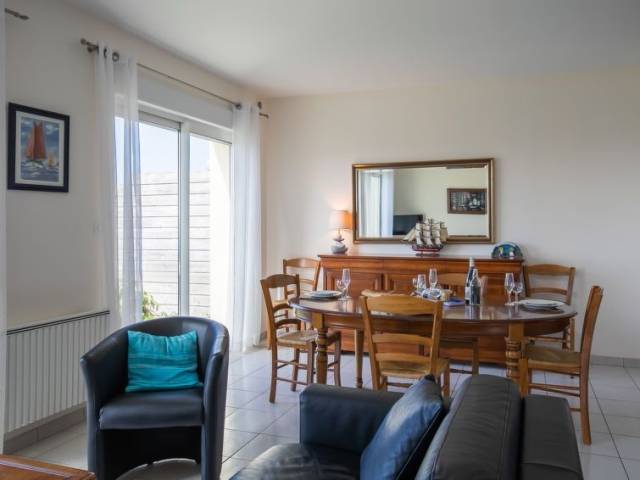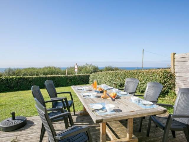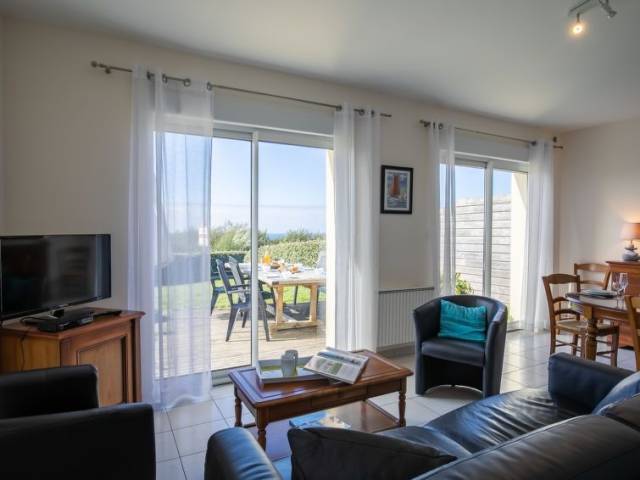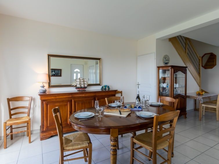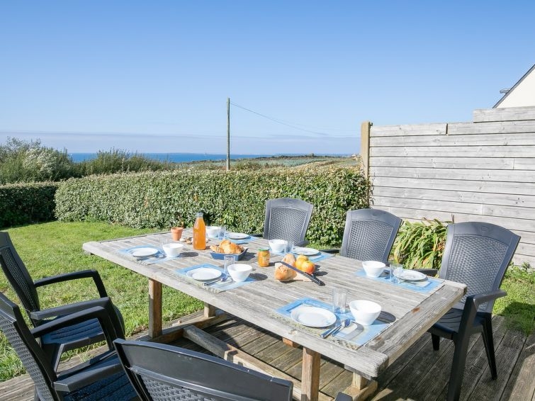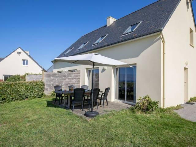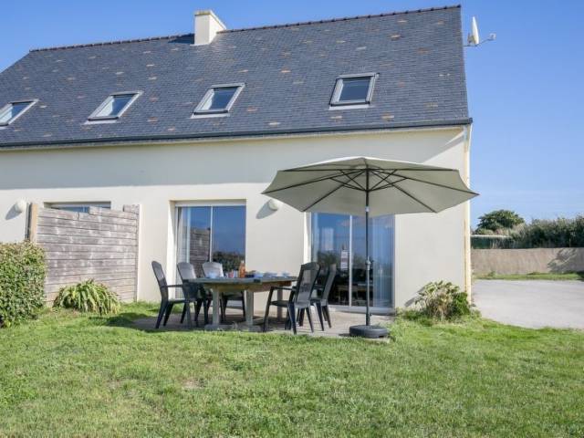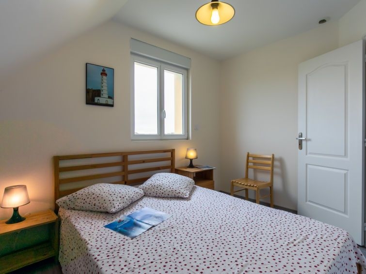 Casa semiadosada "Mer d'Iroise 2", individual. A 1.5 km del centro de Le Conquet, en la periferia, a 5.2 km del centro de Plougonvelin, a 15 km del centro de St. Renan, a 150 m del mar, a 250 m de la playa, cruzando la calle. Comunitario: terreno en estado natural 2'000 m2 (vallado) con césped. Privado: terreno en estado natural 400 m2 con césped, aparcamiento en el mismo terreno. Tienda 1.5 km, tienda de comestibles 1.1 km, supermercado 5 km, restaurante 650 m, panadería 1.2 km, estación de tren "Le Conquet" 1.5 km, playa de arena "Plage de Porz Liogan" 250 m. Puerto para yates 1.5 km, campo de golf (18 hoyos) 18 km, escuela de surf 6 km, rutas de senderismo desde la casa 100 m. Atracciones en los alrededores: Pointe de St.Mathieu 10 km, Brest 25 km, Océanopolis Brest 38 km, Région des Abers 40 km, Départs pour Molène et Ouessant 2 km. A tener en cuenta: calle principal 50 m de la casa. El complejo tiene además 3 casas para alquilar. "Mer des Bosmans 2 (LCQ107)", casa pareada 4 estancias 70 m2 en 2 plantas. Luminoso, con mobiliario de estilo: salón-comedor con puerta corredera, ventanal con mesa de comedor y TV satélite. Salida a la terraza. Cocina abierta (horno, lavavajillas, 4 Placas de inducción, tostadora, hervidor de agua eléctrico, microondas, congelador, cafetera eléctrica). Ducha/WC. Planta superior: 1 dorm., abuhardillado con 2 camas (90 cm, 200 cm de longitud). 2 dorm., abuhardillados, cada habitación con 1 cama de matrimonio (140 cm, 190 cm de longitud). Ducha/WC. Calefacción eléctrica. Terraza, orientación suroeste, jardín, césped 400 m2. Muebles de terraza, barbacoa (portátil), tumbonas (2). Vista muy bonita al mar y Île Béniguet, Île-Molène. El alojamiento dispone de: lavadora, plancha. Internet (Wifi, gratis). A tener en cuenta: casa para no fumadores. Permitido máximo 1 mascota / perro. Entrada privada, detector de humo.