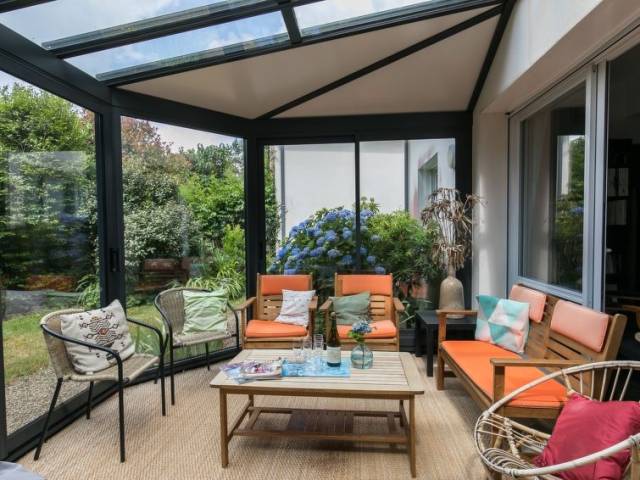 Gouesnach a 6 km de Benodet: Casa unifamiliar "Les Bruyères", bonita del año 2009. En la localidad, a 1 km del centro de Gouesnac'h, a 5 km del centro de Benodet, lugar tranquilo, a 5 km del mar, a 5 km de la playa, en una calle sin salida. Privado: jardín 1'500 m2 con césped y árboles, biotopo. Terraza (20 m2), muebles de jardín, barbacoa, aparcamiento (cubierto) en el mismo terreno, posibilidad de aparcamiento en la calle. Tienda 5 km, tienda de comestibles 900 m, supermercado 4.8 km, centro comercial 12 km, bar 900 m, panadería 4 km, parada de autobús 700 m, playa de arena "Benodet Beach" 5 km, piscina termal "Thalasso Benodet" 5 km. Puerto deportivo 5 km, puerto para yates 5 km, campo de golf 6 km, escuela de surf 6 km, escuela de vela 6 km, minigolf 4 km. Atracciones en los alrededores: Quimper 17 km, Concarneau et Ville Close 20 km, Île Tudy 15 km, Pont l'Abbé 16 km, Embarcadère Le Îles Glénan 5 km, Pointe de la Torche 26 km. Atención: estanque de agua de unos 15 m2 (10 cm-50 cm) y a 50 m de un río (50 cm).