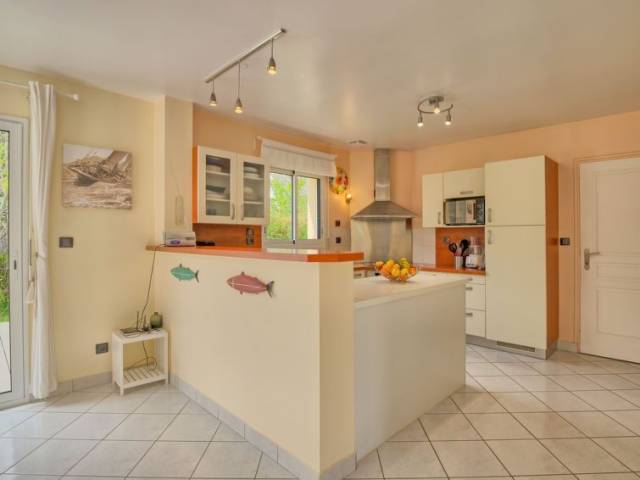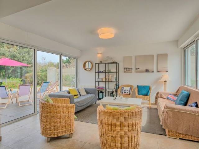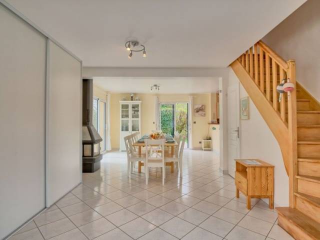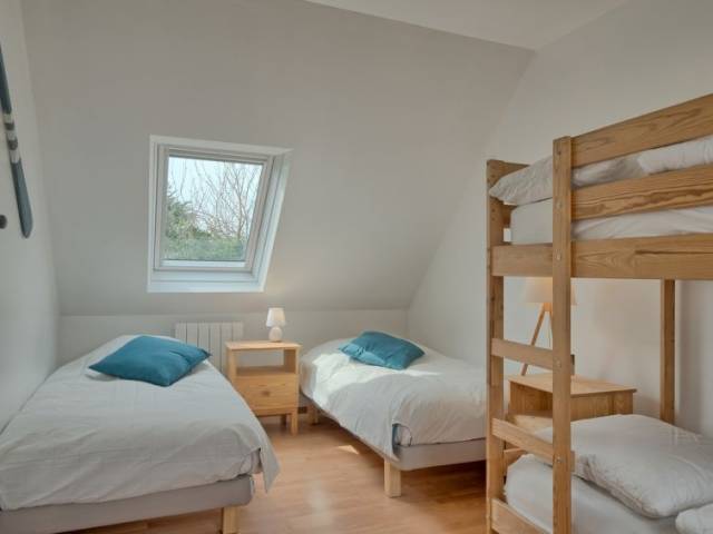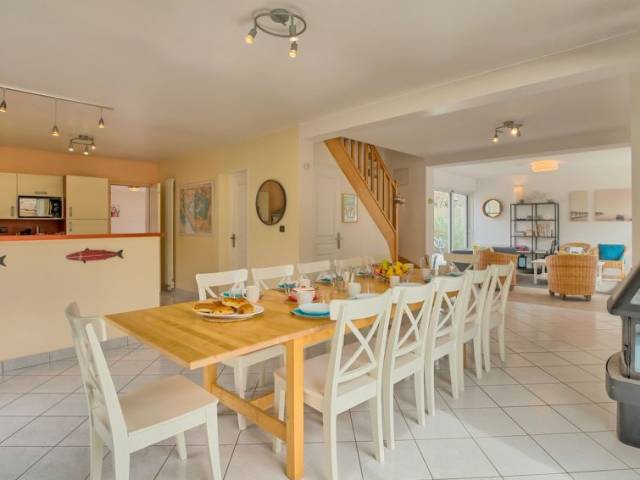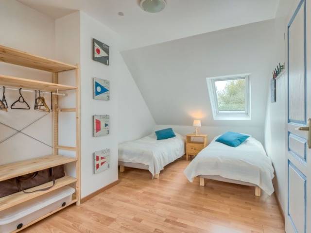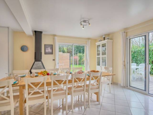 Casa unifamiliar "La Pointe de Kerners". A 1.5 km del centro de Arzon, a 11 km del centro de Sarzeau, a 33 km del centro de Vannes, en un barrio residencial, a 200 m del mar, en una calle sin salida. Privado: terreno 800 m2 (vallada) con césped y árboles. Trastero a disposición. Aparcamiento (para 2 coches) en el mismo terreno. Supermercado 1.5 km, playa de arena "Golfe de Morbihan" 200 m. Puerto deportivo 2 km, escuela de vela 2 km, rutas de senderismo desde la casa 200 m. Atracciones en los alrededores: Port du Crouesty 2 km, Thalassotherapie 2 km, Port Navalo 3.5 km, Belle-Ile en Mer, Houat, Hoedic. Zona de senderismo GR34. "La Pointe de Kerners (RHU356)", casa 5 estancias 120 m2 en 2 plantas. Vivienda adecuada para 9 adultos. Reformada en 2014, con mobiliario bonito: salón-comedor con chiminea nórdica y rincón-comedor. Salida a la terraza. 1 dorm. con 2 camas (90 cm, 200 cm de longitud), TV (pantalla plana). 1 dorm. con ventanal con 1 cama de matrimonio (160 cm, 200 cm de longitud), ducha/WC. Salida a la terraza. Cocina abierta (horno, lavavajillas, 3 Placas de inducción, tostadora, hervidor de agua eléctrico, microondas, congelador, cafetera eléctrica). WC separado. Planta superior: 1 dorm., abuhardillado con 2 camas (90 cm, 190 cm de longitud). 1 dorm., abuhardillado con 2 camas (90 cm, 190 cm de longitud), 1 x 2 literas (90 cm, 190 cm de longitud). Baño/WC. Calefacción eléctrica. Terraza. Muebles de terraza, barbacoa, tumbonas (8). El alojamiento dispone de: lavadora, secadora, plancha, trona, cuna. Internet (Wifi, gratis). A tener en cuenta: detector de humo. La disponibilidad de las camas es flexible. Aunque haya más camas disponibles que la ocupación máxima, esta no se puede exceder.