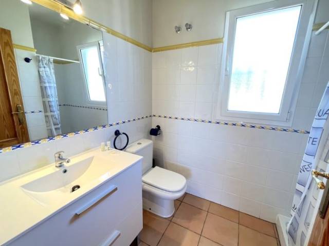 "Menta", casa 3 estancias 95 m2. Luminoso, con mobiliario confortable: salón-comedor con TV, TV satélite, aire acondicionado y bomba de calor, caliente. Salida a la terraza, a la piscina. 1 dorm. con 1 cama (140 cm), aire acondicionado y bomba de calor, caliente. 1 dorm. con 2 camas (90 cm), aire acondicionado y bomba de calor, caliente. Cocina (horno, lavavajillas, 3 placas de vitrocerámica, tostadora, hervidor de agua eléctrico, microondas, congelador, cafetera eléctrica). Baño/bidet/WC, ducha/WC. Muebles de terraza, tumbonas (4). Vista bonita. El alojamiento dispone de: lavadora. Internet (Wifi, extra). AT-441350-A