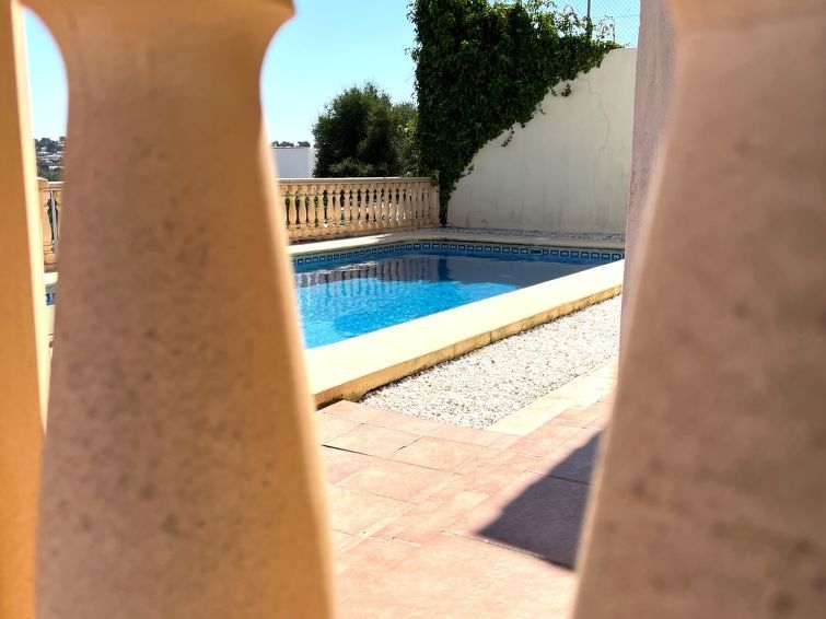 Casa. 24 casas en la residencia. En el barrio de Monte Javea, a 5 km del centro de Jávea-Arenal, en una pendiente, a 3 km del mar. Privado: terreno (vallada) con plantas y árboles, piscina (8 x 4 m, 120 - 220 cm de profundidad, Disponible por temporada: 01.Ene. - 31.Dic.). Posibilidad de aparcamiento en la calle. Tienda 2.5 km, restaurante 1 km, playa de arena "Arenal" 5 km playa de gravilla "Granadella" 3 km. Tenis 1 km.