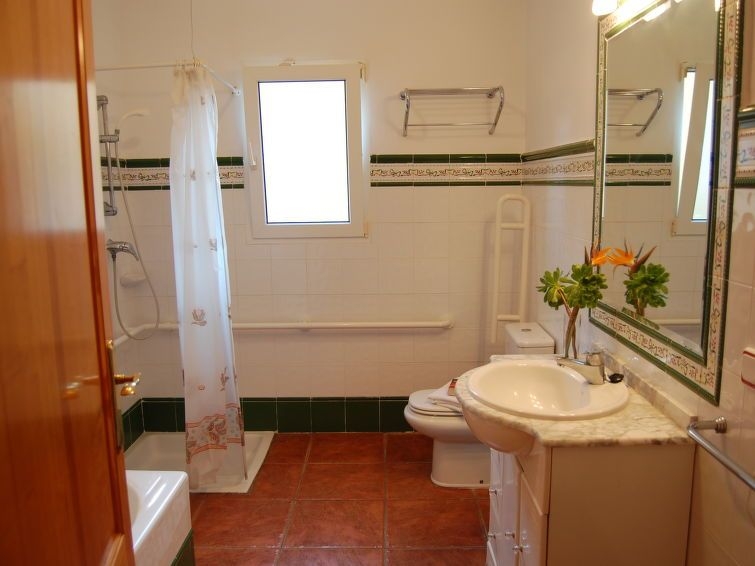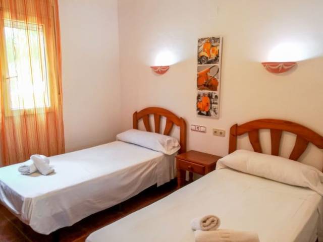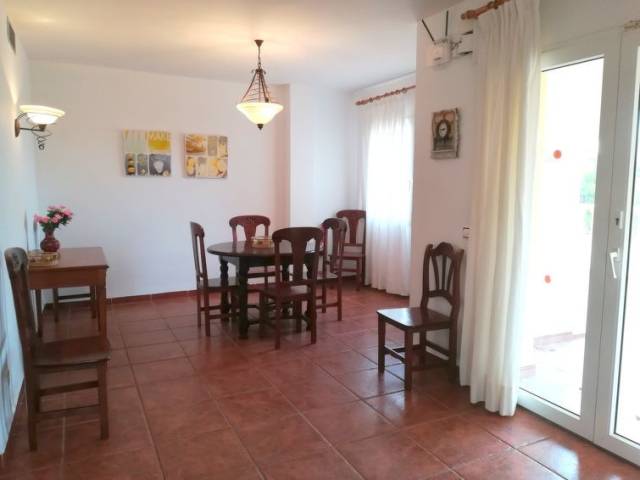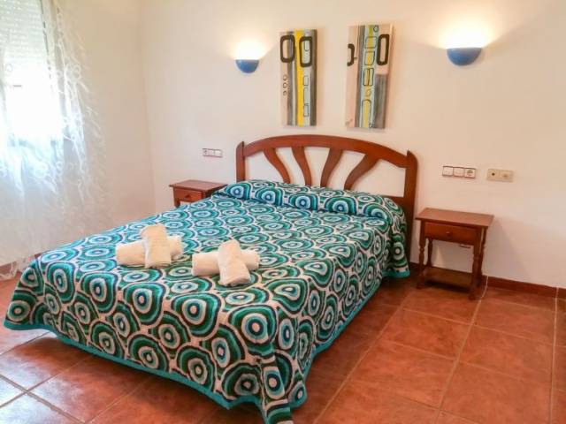 "NISPERO", casa 5 estancias 120 m2 en 2 plantas. Luminoso, con mobiliario confortable: salón-comedor con TV y TV satélite (pantalla plana), aire acondicionado. Salida a la terraza-jardín. 1 dorm. con 1 cama de matrimonio (140 cm), baño/WC y aire acondicionado. 1 dorm. con 2 camas (90 cm), aire acondicionado. 1 dorm. con 2 camas (90 cm), aire acondicionado. Cocina (horno, lavavajillas, 3 placas de vitrocerámica, tostadora, hervidor de agua eléctrico, microondas, cafetera eléctrica) con mesa de comedor. Baño/WC, ducha/WC. Ningún tipo de calefacción. Planta superior: (escalera exterior) 1 dorm. con 1 cama de matrimonio (140 cm), ducha/WC, aire acondicionado y bomba de calor, caliente. Muebles de terraza. El alojamiento dispone de: lavadora, plancha, secador de pelo. Internet (Wifi, extra). AT-441267-A