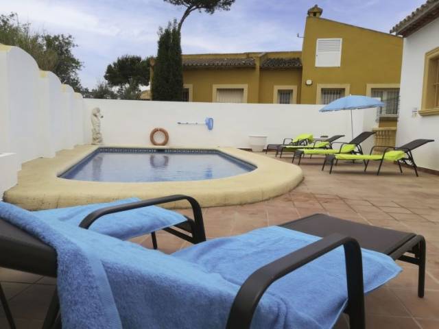 Complejo vacacional "Monte Verde". En el barrio de Tosalet, a 3 km del centro de Jávea, a 3 km del centro de Jávea-Arenal, en una pendiente, a 2.5 km del mar. Privado: terreno, piscina (7 x 3 m, 120 - 220 cm de profundidad, Disponible por temporada: 01.Ene. - 31.Dic.). Muebles de jardín, aparcamiento junto a la casa. Tienda 1 km, restaurante 1 km, playa de arena 2.5 km.