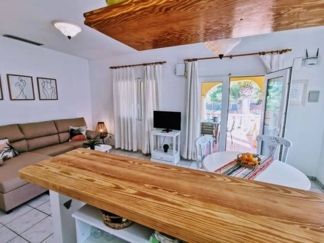 "PERA", casa 3 estancias 90 m2. Luminoso, con mobiliario confortable y rústico: salón-comedor con TV y TV satélite (pantalla plana), aire acondicionado. Salida a la terraza-jardín. 1 dorm. con 1 cama de matrimonio (1 x 140 cm), baño/WC y aire acondicionado. 1 dorm. con 2 camas (90 cm), ducha/WC. Cocina abierta (horno, lavavajillas, 3 placas de vitrocerámica, tostadora, hervidor de agua eléctrico, microondas, cafetera eléctrica). Ducha/WC. Ningún tipo de calefacción. Muebles de terraza, tumbonas. El alojamiento dispone de: lavadora, plancha, secador de pelo. Internet (Wifi, extra). AT-441262-A