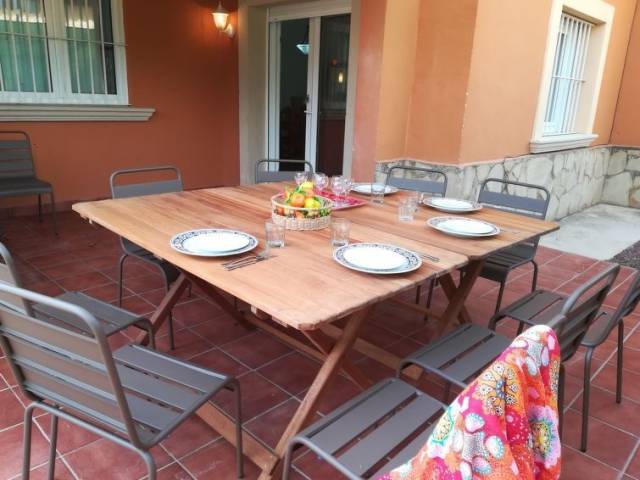 "MARACUYA", villa 7 estancias 160 m2 en 2 plantas. Luminoso, con mobiliario confortable: salón-comedor con TV satélite (pantalla plana). 1 dorm. con 1 cama de matrimonio y baño/WC. 1 dorm. con 2 camas (90 cm), ducha/WC. Cocina abierta (horno, lavavajillas, 3 placas de vitrocerámica, tostadora, hervidor de agua eléctrico, microondas, cafetera eléctrica) con mesa de comedor. Ningún tipo de calefacción. Planta superior: 1 dorm. con 1 cama de matrimonio y baño/WC. 1 dorm. con 2 camas (90 cm). 1 dorm. con 2 camas (90 cm). 1 dorm. con 2 camas (90 cm) con ducha/WC. Terraza-jardín. Muebles de terraza, tumbonas. El alojamiento dispone de: lavadora, plancha, secador de pelo. Internet (Wifi, extra). AT-441261-A