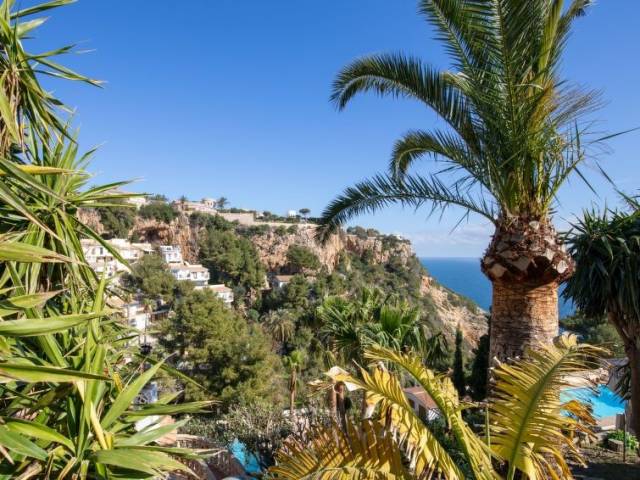 Casa adosada "Vista Halcon". En el barrio de Balcón al Mar, lugar aislado, tranquilo en una pendiente, a 5 km del mar. Posibilidad de aparcamiento. Supermercado 800 m, restaurante 600 m, playa de arena "Arenal" 11 km, playa de piedras "Granadella" 6 km. Tenis 800 m.