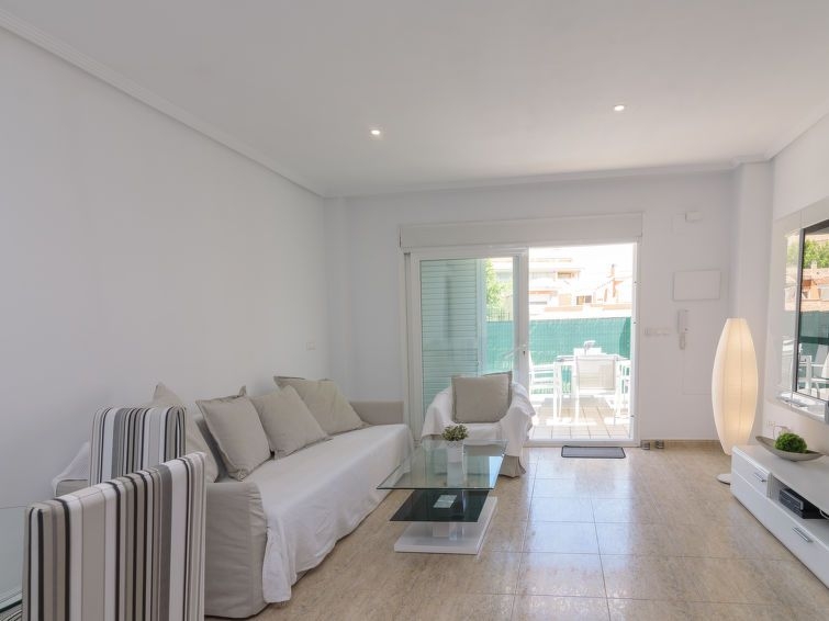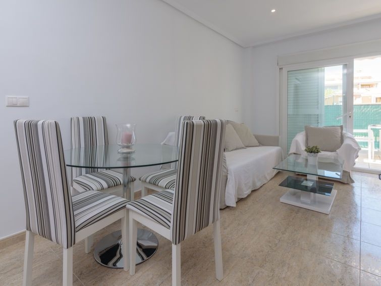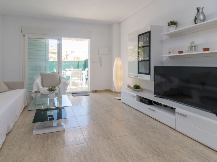 "Moreras del Saladar", apartamento de 4 estancias 110 m2. Con mobiliario confortable y moderno: salón-comedor con TV satélite y TV digital. Salida a la terraza. 1 dorm. con 1 cama de matrimonio (150 cm, 200 cm de longitud). 1 dorm. con 2 camas (90 cm, 190 cm de longitud). 1 dorm. con 2 camas (90 cm, 190 cm de longitud). Cocina abierta (horno, lavavajillas, 3 placas de vitrocerámica, microondas, congelador, cafetera eléctrica). 2 ducha/WC. Aire acondicionado, aire caliente. Muebles de terraza. Vista a la piscina. El alojamiento dispone de: lavadora. Internet (Wifi). Plaza de aparcamiento n. 25 (cubierto, 1 coche). A tener en cuenta: TV solamente FR, ES, AL. AT-467565-A