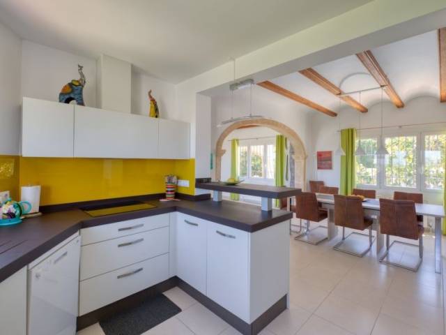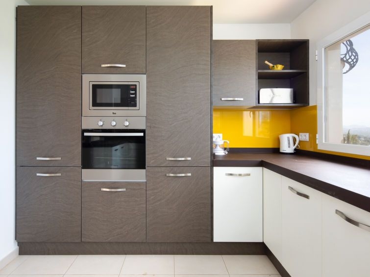 "Villa Bramble", villa 4 estancias 160 m2 en 2 plantas. Con mobiliario funcional y confortable: salón-comedor con TV digital, aire acondicionado y bomba de calor, caliente. Salida a la terraza. 2 dorm., cada habitación con 2 camas (90 cm, 200 cm de longitud), aire acondicionado. 1 dorm. con 1 cama de matrimonio (2 x 200 cm), ducha/WC y aire acondicionado. Cocina abierta (horno, lavavajillas, 4 placas de vitrocerámica, tostadora, hervidor de agua eléctrico, microondas, congelador). Baño/WC. En planta inferior: salón con aire acondicionado y bomba de calor, caliente. Salida al jardín. 2 dorm., cada habitación con 2 camas (90 cm, 200 cm de longitud), aire acondicionado. Cocina (lavavajillas, 3 placas de vitrocerámica, congelador). Ducha/WC. Jardín grande. Muebles de terraza, tumbonas (4), porche. Vista panorámica al mar, a las montañas y al valle. El alojamiento dispone de: lavadora, plancha, cuna, secador de pelo. Internet (Wifi, gratis). Plaza de aparcamiento. Adecuado para familias. VT-481944-A