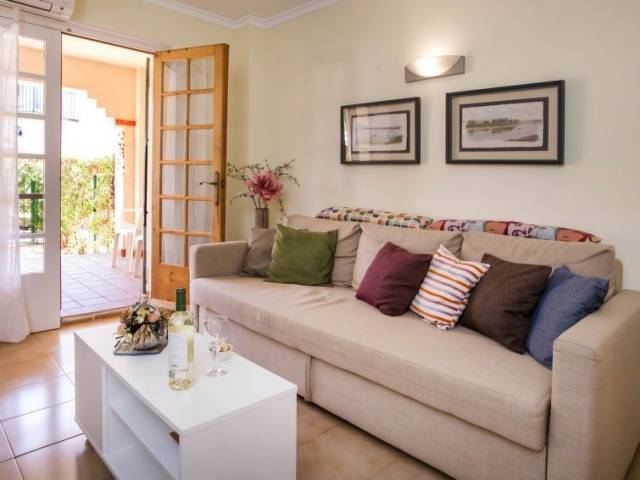 Residencia "La Isla", muy agradable, confortable. Lugar tranquilo, soleado, a 600 m del mar. Comunitario: jardín con césped, terreno con hierba, piscina (90 x 60 m, 138 m diámetro, 110 - 200 cm de profundidad, Disponible por temporada: 01.Ene. - 31.Dic.) con escalera interior. Ducha exterior. En el inmueble: ascensor. Aparcamiento en el mismo terreno. Tienda, supermercado, restaurante, bar 200 m, playa de arena "Arenal" 600 m. Escuela de surf, escuela de vela 300 m, tenis 200 m. "La Isla", apartamento de 3 estancias 75 m2, en la planta baja. Con mobiliario confortable y agradable: salón-comedor con TV digital, aire acondicionado y bomba de calor, caliente. Salida a la terraza-jardín, a la piscina. 1 dorm. con 1 cama de matrimonio (150 cm, 200 cm de longitud), aire acondicionado y bomba de calor, caliente. 1 dorm. con 2 camas (90 cm, 190 cm de longitud), ventilador. Cocina (horno, lavavajillas, 3 Placas de inducción, tostadora, hervidor de agua eléctrico, microondas, congelador, cafetera eléctrica). Baño/WC. Terraza-jardín grande. Muebles de terraza, tumbonas, porche. El alojamiento dispone de: lavadora, plancha, cuna, secador de pelo. Internet (Wifi, gratis). A tener en cuenta: TV solamente ES. AT-456181-A