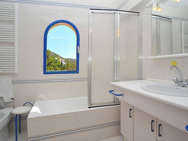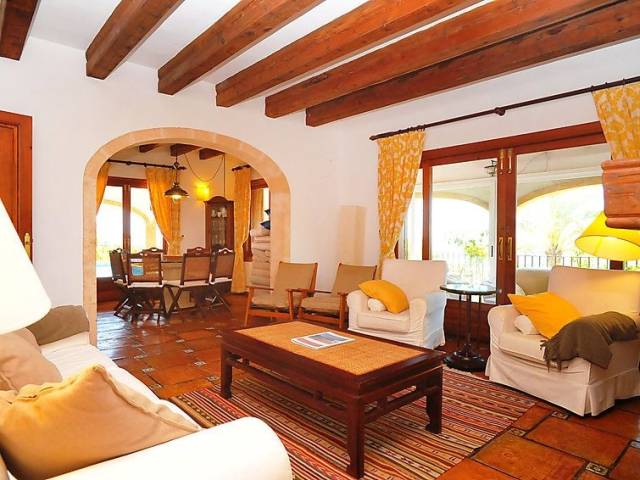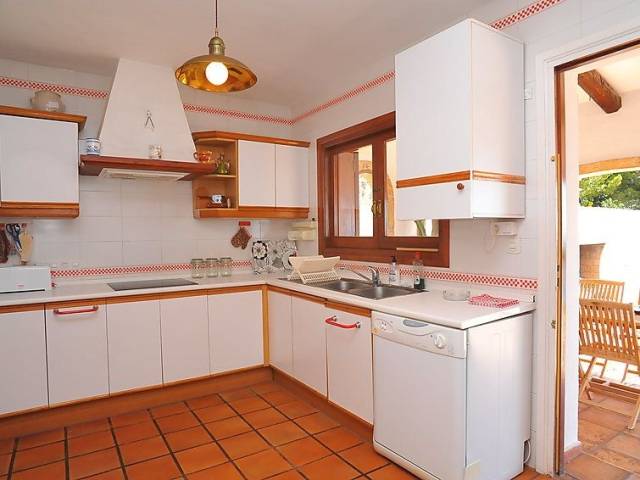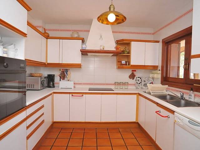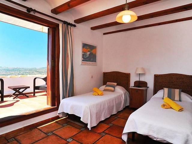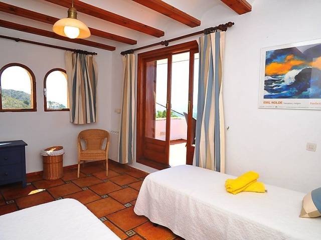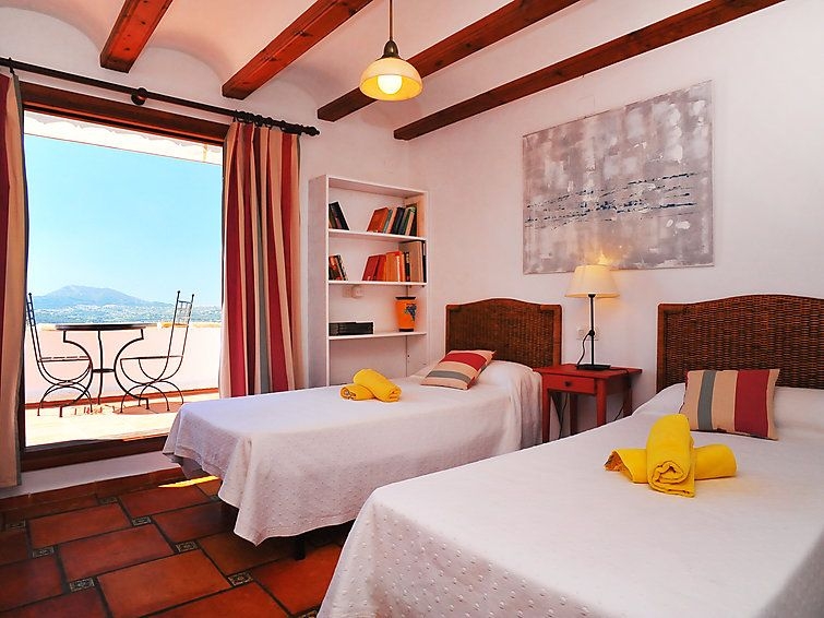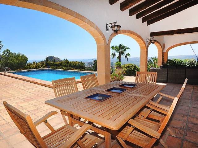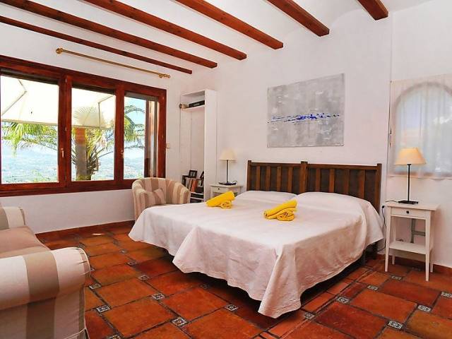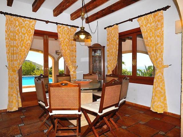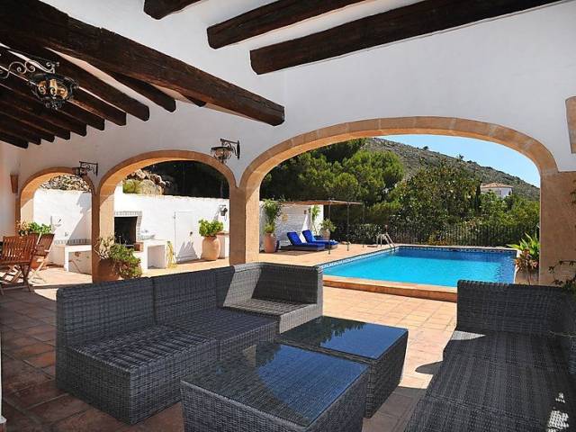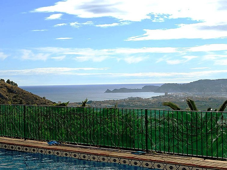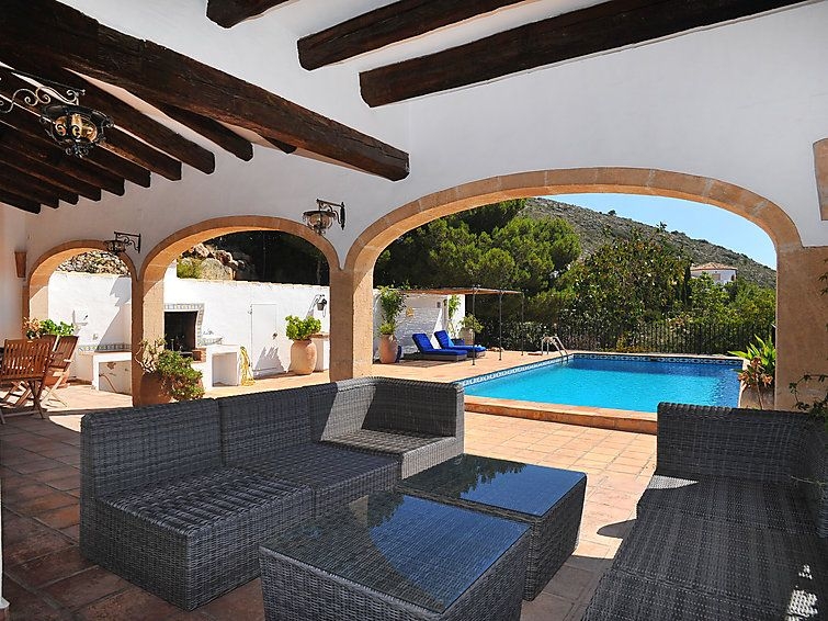 Casa unifamiliar "Nostra", bonita de 2 plantas. En el barrio de Montgo, lugar tranquilo, soleado en una pendiente, en un barrio residencial, a 7 km del mar, en una calle sin salida. Privado: jardín en diferentes niveles, 1'800 m2 (vallado) con plantas, piscina (5 x 10 m, Disponible por temporada: 01.Ene. - 31.Dic.) con escalera interior. Supermercado 3 km, restaurante 2 km, playa de arena "Arenal" 7 km. Campo de golf (18 hoyos) 5 km. Grupos de jóvenes sólo bajo petición.