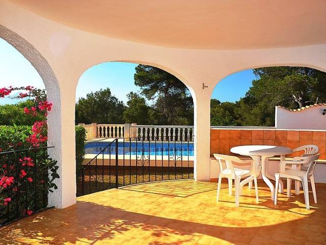 Casa "Balcon al Mar". En el barrio de Balcon al Mar, a 6 km del mar. Privado: jardín natural 950 m2, piscina (5 x 9 m, Disponible por temporada: 01.Ene. - 31.Dic.) con escalera interior. Ducha exterior. En el inmueble: calefacción central. Supermercado 1.4 km, restaurante 400 m, playa de arena "Arenal" 12 km, cala para bañarse 6 km. Tenis 1.4 km. Grupos de jóvenes sólo bajo petición.