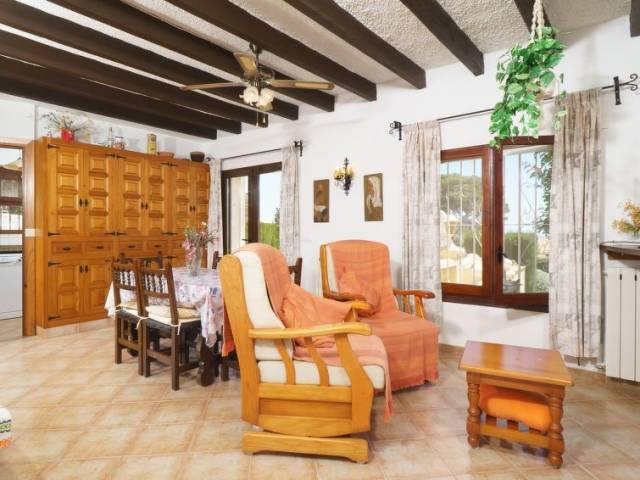 Casa 4 estancias 100 m2. Con mobiliario funcional: salón con TV satélite (pantalla plana). Comedor con TV satélite (pantalla plana), ventilador. 1 dorm. con 2 camas, ducha/WC, TV y pantalla plana. 1 dorm. con 2 camas y baño/ducha/WC. Pequeña cocina (lavavajillas, microondas, congelador, cafetera eléctrica). Muebles de terraza, tumbonas (4). Vista panorámica bonita al mar. El alojamiento dispone de: lavadora. Internet (Wifi, gratis). Plaza de aparcamiento (vallada, 2 Coches) junto a la casa. 1 mascota / perro. AT-440259-A