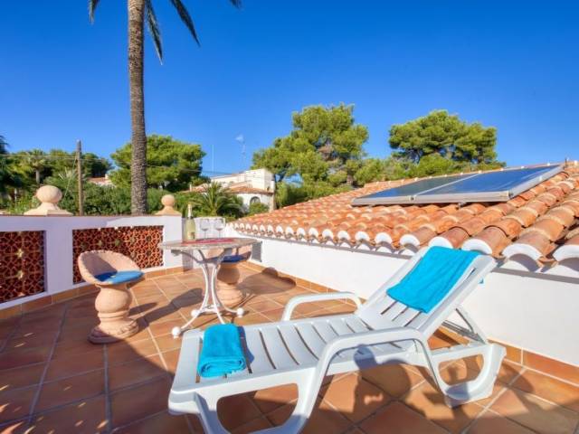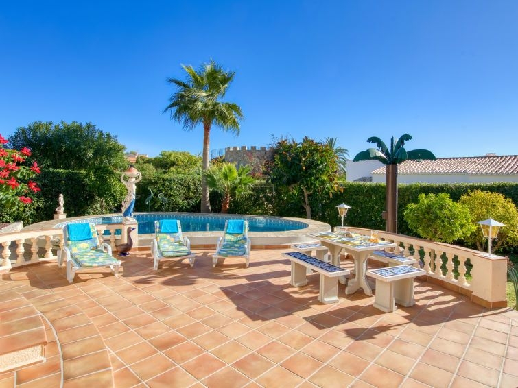 Casa unifamiliar "Uschi", de 2 plantas. En el barrio de Balcón al Mar, lugar tranquilo, soleado en un barrio residencial, a 6 km del mar. Privado: jardín con césped 1'000 m2 plantas, piscina (4 x 8 m, Disponible por temporada: 01.Ene. - 31.Dic.) con escalera interior. Ducha exterior, posibilidad de aparcamiento en la calle. Supermercado 1 km, restaurante 700 m, playa de arena "Arenal" 8 km, playa de piedras "Granadella" 6 km. Tenis 1 km. A tener en cuenta: primera planta cerrada y no ocupada.