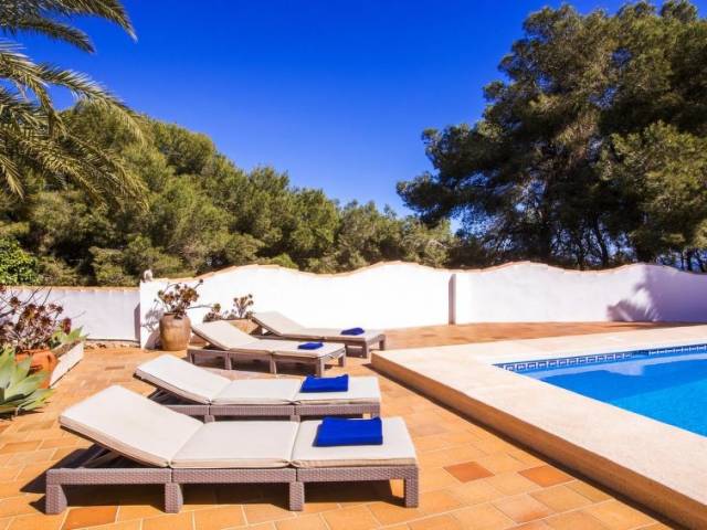 Casa "Andrea", bonita. En el barrio de Balcon al Mar, lugar elevado, a 5 km del mar. Privado: jardín 850 m2 (vallado) con plantas y flores, piscina (5 x 10 m, Disponible por temporada: 01.Ene. - 31.Dic.). Ducha exterior. En el inmueble: azotea. Acceso por escaleras hasta la casa. Supermercado 300 m, restaurante 400 m, playa de arena "Arenal" 12 km, cala para bañarse 5 km. Tenis 300 m.