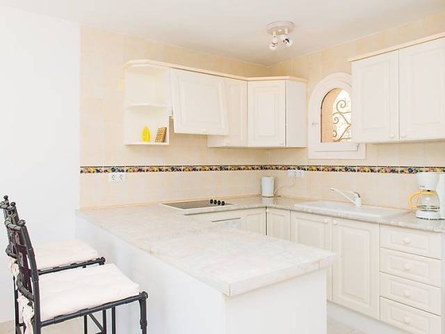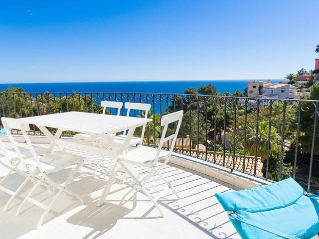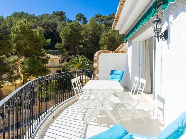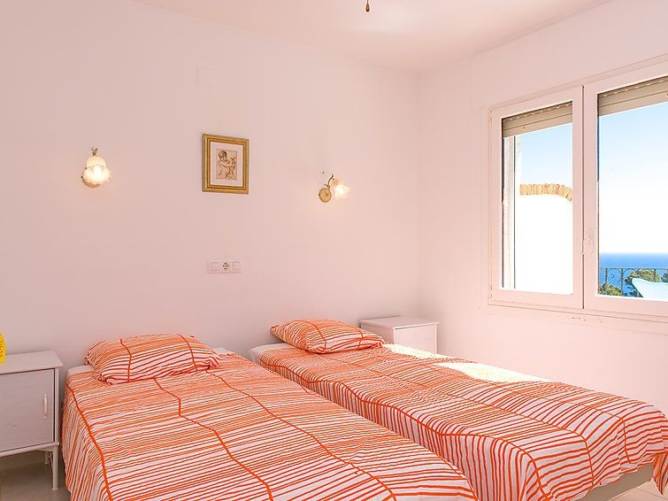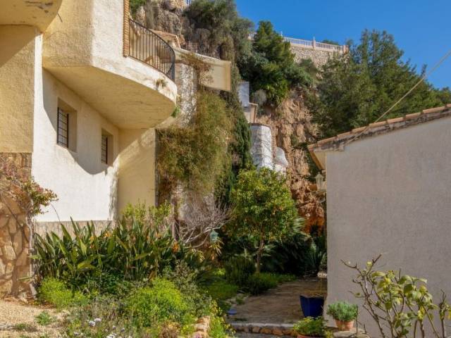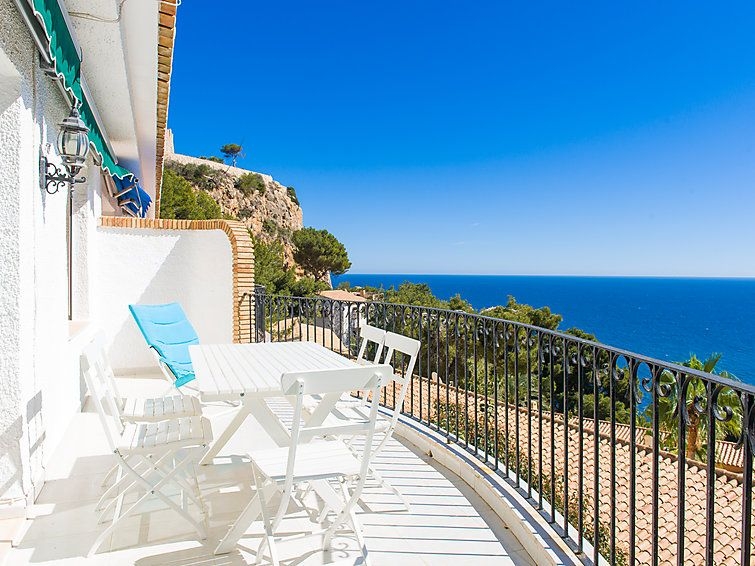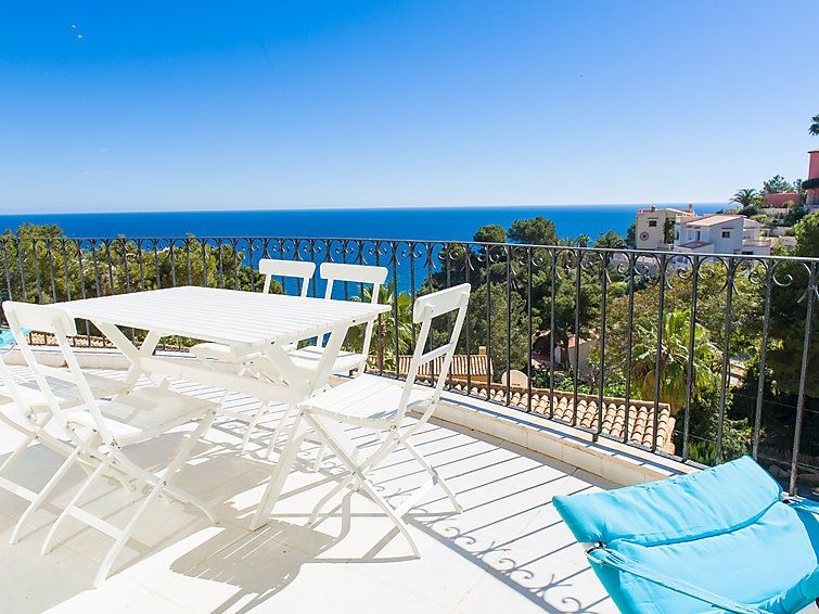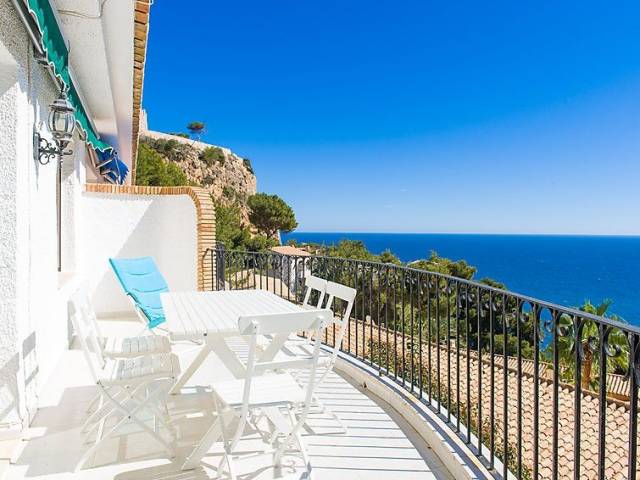 Casa adosada "Vista Halcon". En el barrio de Balcón al Mar, lugar aislado, tranquilo en una pendiente, a 5 km del mar. Posibilidad de aparcamiento. Supermercado 800 m, restaurante 600 m, playa de arena "Arenal" 11 km, playa de piedras "Granadella" 6 km. Tenis 800 m.