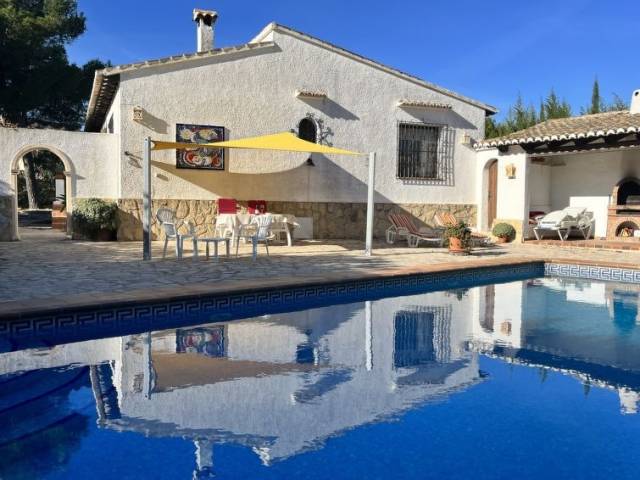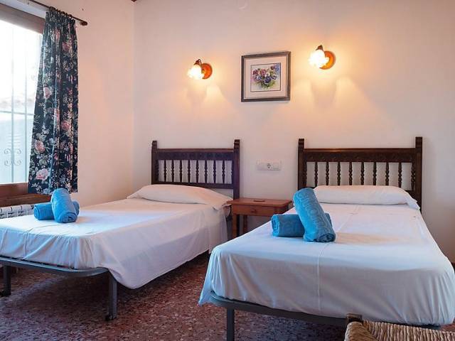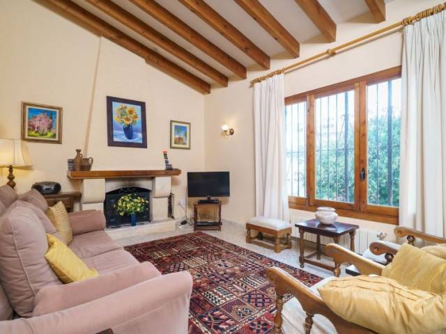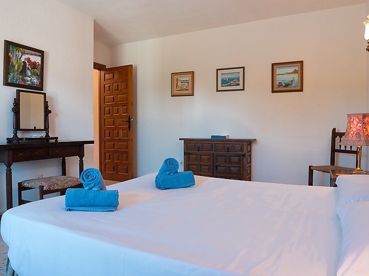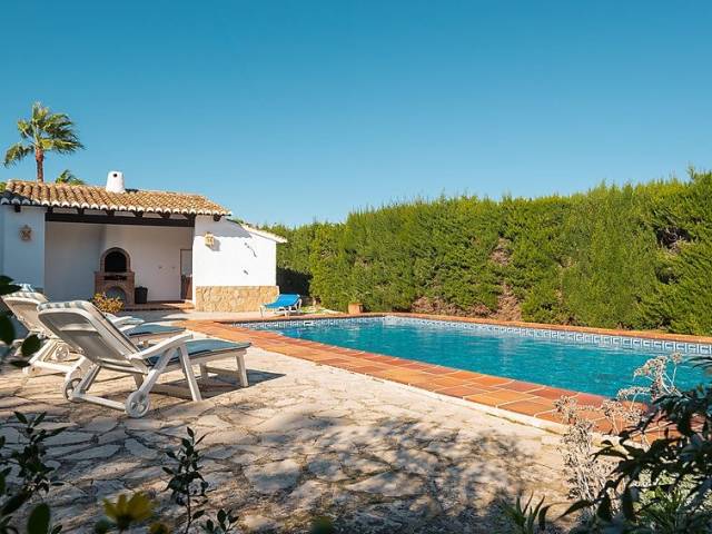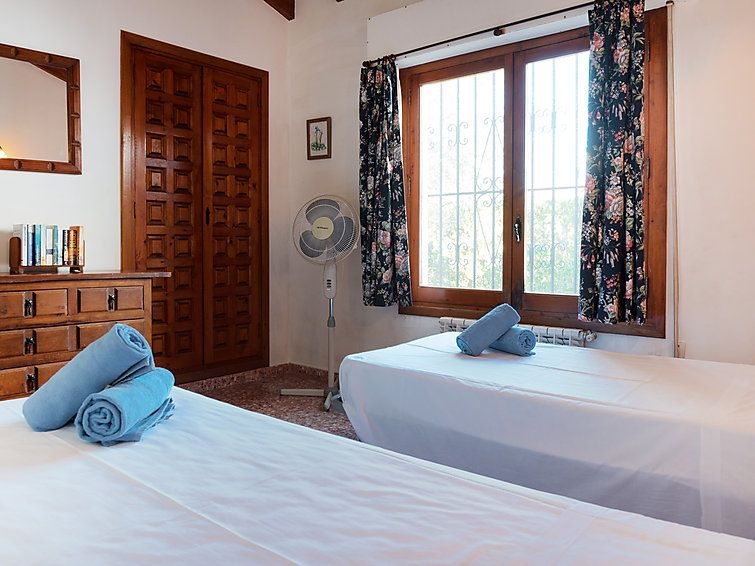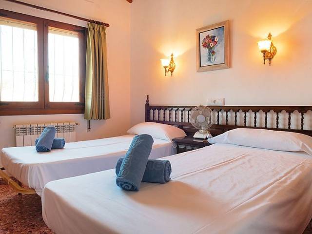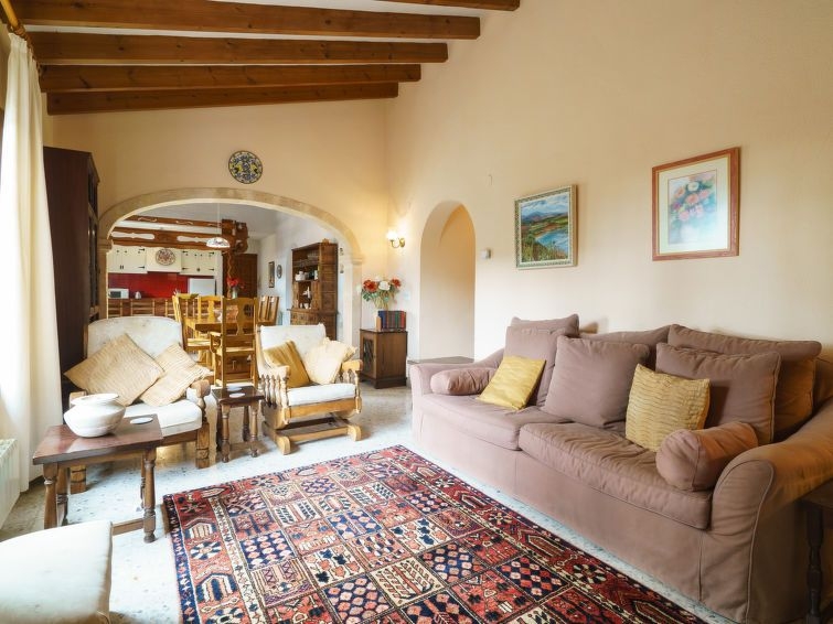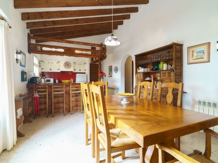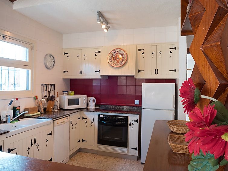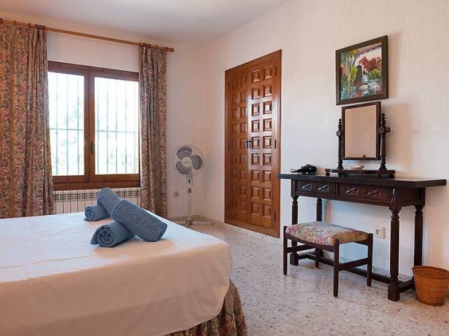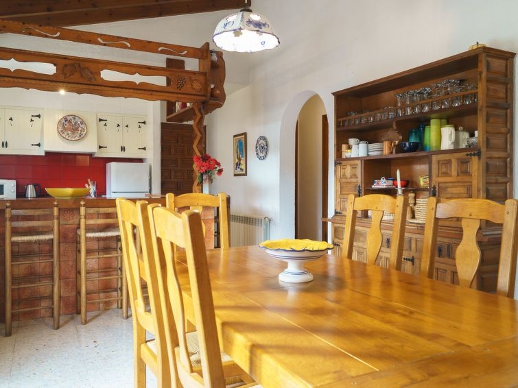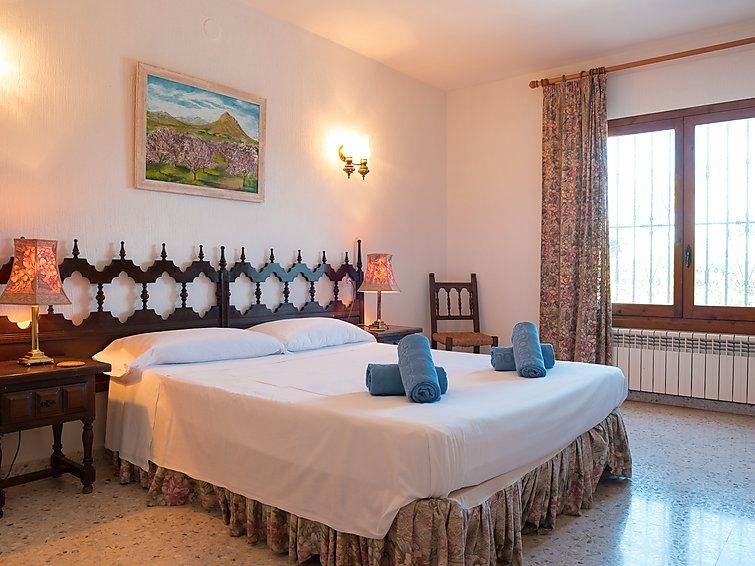 Casa "Amaranda". En el barrio de Balcón al Mar, a 5 km del mar. Privado: jardín 1'100 m2 con plantas, piscina occulta desde el exterior (5 x 10 m, 100 - 180 cm de profundidad, Disponible por temporada: 01.Ene. - 31.Dic.) con escalera interior. Ducha exterior, caseta de barbacoa. En el inmueble: azotea, calefacción central. Supermercado 1.5 km, restaurante 1.5 km, playa de arena "Arenal" 8 km, playa de piedras "Granadella" 5 km, playa nudista 4 km. Grupos de jóvenes sólo bajo petición. Vecindario muy sensible a ruidos. Se ruega respetar la tranquilidad y normas de buen comportamiento. Casa 5 estancias 130 m2. Con mobiliario funcional: salón-comedor con chimenea y TV cable (pantalla plana), DVD. 1 dorm. con 1 cama de matrimonio (140 cm, 200 cm de longitud). 2 dorm., cada habitación con 2 camas (90 cm, 200 cm de longitud). 1 dorm. (150 cm, 190 cm de longitud). Cocina abierta (horno, lavavajillas, 4 placas de vitrocerámica, tostadora, microondas, congelador, cafetera eléctrica) con barra americana. Ducha/WC, ducha/bidet/WC. Terraza grande parcialmente cubierta. Muebles de terraza, barbacoa, tumbonas (5). El alojamiento dispone de: lavadora, plancha, trona, cuna, secador de pelo. Internet (Wifi, gratis). Plaza de aparcamiento (vallada, 2 Coches). 1 mascota pequeña / perro. AT-444597-A