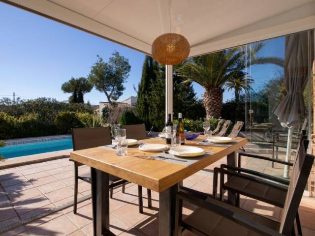 Casa "Harmony", amplia, agradable, confortable. En el barrio de Panorama, a 5 km del mar, a 5 km de la playa. Privado: plantas y árboles, jardín natural, bonito jardín para relajarse, piscina rectangular (9 x 5 m, 110 - 210 cm de profundidad, Disponible por temporada: 01.Ene. - 31.Dic.) con escalera interior. Terraza, muebles de jardín, aparcamiento en el mismo terreno. Tienda de comestibles 2.3 km, restaurante 350 m, bar 650 m, playa de arena "El Arenal" 4.3 km, playa de piedras "La Granadella" 2.6 km, playa rocosa "Cala Blanca" 3.2 km. El propietario no acepta grupos de adolescentes/jóvenes.