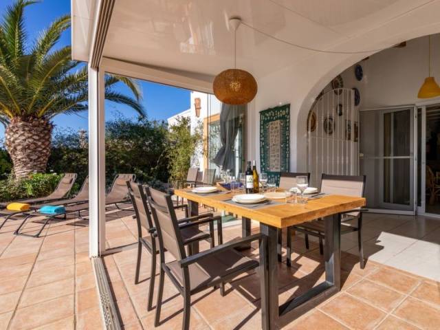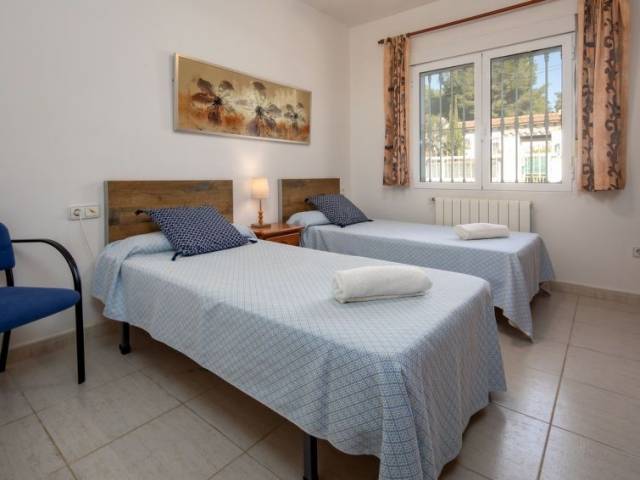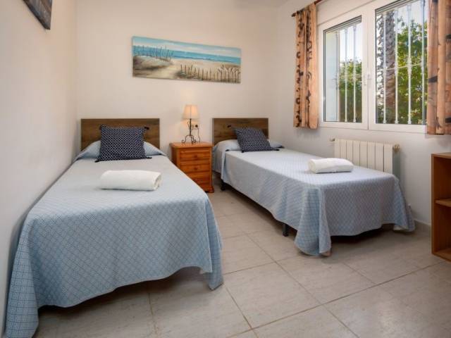 "Harmony", casa 4 estancias 160 m2. Espacioso, con mobiliario confortable y de buen gusto: salón-comedor con TV digital, aire acondicionado y bomba de calor, caliente. Salida a la terraza-jardín, a la piscina. 1 dorm. con 1 cama de matrimonio (135 cm, 190 cm de longitud), ducha/bidet/WC, aire acondicionado, ventilador y bomba de calor, caliente. 1 dorm. con 2 camas (90 cm, 190 cm de longitud), ventilador. 1 dorm. con 2 camas (90 cm, 190 cm de longitud), ventilador. Cocina (horno, lavavajillas, 4 placas de vitrocerámica, tostadora, microondas, congelador, cafetera eléctrica). Salida a la terraza. Ducha/WC. Terraza-jardín. Muebles de terraza, barbacoa, tumbonas, porche. El alojamiento dispone de: lavadora, plancha, mosquitera, cuna, secador de pelo. Internet (Wifi, gratis). Plaza de aparcamiento. A tener en cuenta: TV solamente ES. VT-488281-A
