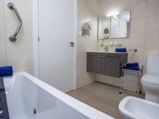 Casa de apartamentos "Pou de Moro", amplio, bonito. Lugar tranquilo, soleado, a 1.2 km del mar, a 1.2 km de la playa. Comunitario: con césped y árboles, piscina rectangular (15 x 7 m, 80 - 210 cm de profundidad, Disponible por temporada: 01.Ene. - 31.Dic.). Ducha exterior, garaje comunitario n. 17. Supermercado, restaurante, café 300 m, playa de arena "Playa del Arenal" 2.5 km, playa de piedras "Primer Muntanyar" 1.2 km. Puerto deportivo 2 km, escuela de surf 1.3 km. El propietario no acepta grupos de adolescentes/jóvenes. "Pou de Moro", apartamento de 4 estancias 110 m2. Espacioso y luminoso, con mobiliario muy bonito: salón-comedor con TV digital, aire acondicionado y bomba de calor, caliente. Salida a la terraza. 1 dorm. con 1 cama de matrimonio (150 cm, 200 cm de longitud), baño/WC, aire acondicionado y bomba de calor, caliente. Salida a la terraza. 1 dorm. con 1 cama de matrimonio (150 cm, 200 cm de longitud), aire acondicionado y bomba de calor, caliente. Salida a la terraza. 1 dorm. con 1 cama (90 cm, 190 cm de longitud), aire acondicionado y bomba de calor, caliente. Cocina abierta (horno, lavavajillas, 3 Placas de inducción, tostadora, microondas, congelador, cafetera eléctrica). Ducha/WC. Terraza grande 30 m2, cubierta, orientación norte terraza grande 20 m2, cubierta, orientación sur. Muebles de terraza. Vista bonita a las montañas. El alojamiento dispone de: lavadora, plancha, secador de pelo. Garaje n. 17. A tener en cuenta: TV solamente ES. VT-494151-A