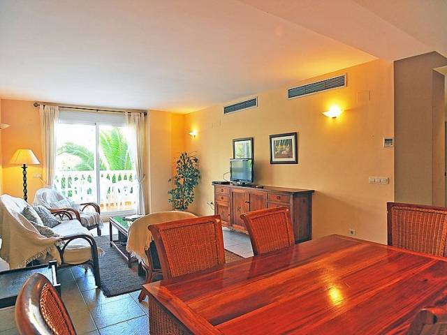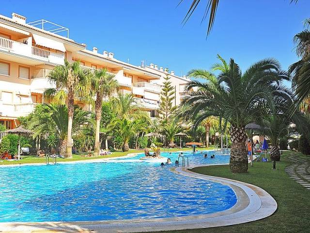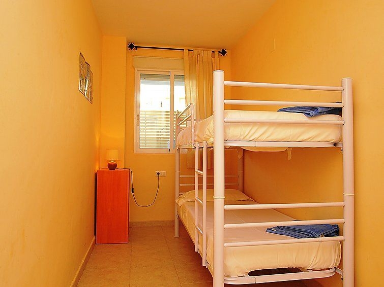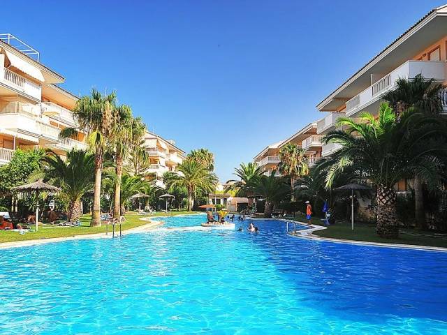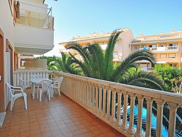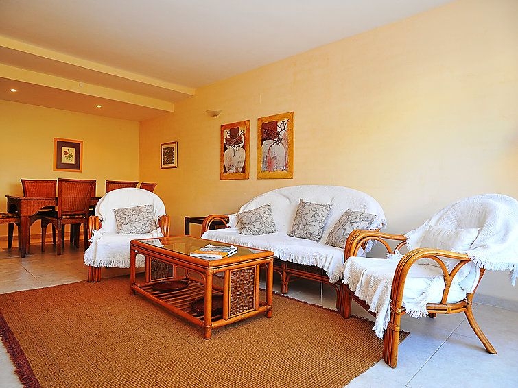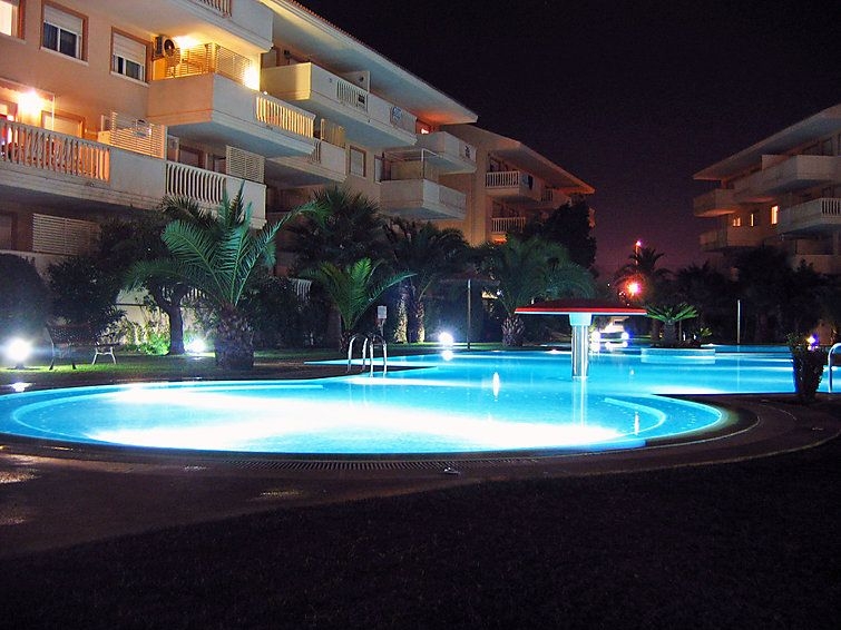 Apartamento de 4 estancias 115 m2 en el 1° piso. Con mobiliario funcional: salón-comedor con TV digital y DVD. Salida a la terraza. 1 dorm. doble. Salida a la terraza. 1 dorm. doble con baño/bidet/WC. 1 dorm. para niños con 1 x 2 literas (80 cm). Cocina (horno, lavavajillas, microondas, congelador). Ducha/bidet/WC. Aire acondicionado, aire caliente. Terraza 28 m2. Muebles de terraza. Vista a la piscina. El alojamiento dispone de: lavadora. Internet (Wifi, gratis). Garaje n. 19. AT-424390-A