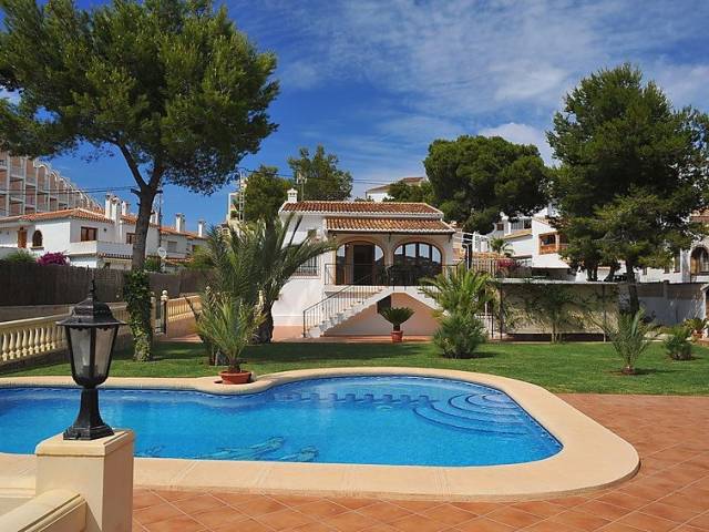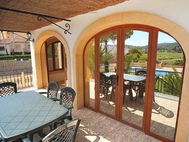 Casa "Patrai". En el barrio de Montañar II, lugar tranquilo, soleado, a 200 m del mar, en una calle sin salida. Privado: jardín 1'000 m2 con césped, piscina (5 x 9 m, Disponible por temporada: 01.Ene. - 31.Dic.) con escalera interior. Ducha exterior. Tienda, supermercado, restaurante 900 m, playa de arena "Arenal" 900 m, playa de piedras "Caleta" 200 m. El propietario no acepta grupos de adolescentes/jóvenes. Vecindario muy sensible a ruidos. Se ruega respetar la tranquilidad y normas de buen comportamiento.