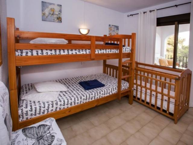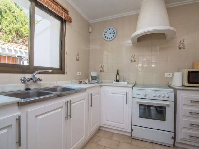 Casa "New Antoinette", bonita de 2 plantas, reformada en 2018. En el barrio de La Colina, lugar tranquilo, soleado en un barrio residencial, a 4 km del mar. Privado: jardín 1'100 m2 (vallado) con plantas, piscina (5 x 9 m, 120 - 220 cm de profundidad, Disponible por temporada: 01.Ene. - 31.Dic.) con escalera interior. Supermercado 2 km, restaurante 1 km, playa de arena "Arenal" 4 km. Grupos de jóvenes sólo bajo petición. Casa 4 estancias 145 m2. Con mobiliario funcional y confortable: salón-comedor con chiminea nórdica, TV satélite, pantalla plana, equipo de música, DVD y aire acondicionado. Salida a la terraza. 1 dorm. con 1 cama de matrimonio (150 cm, 190 cm de longitud). 1 dorm. para niños con 1 x 2 literas (90 cm, 190 cm de longitud). Cocina (4 fogones, horno, lavavajillas, microondas, congelador, cafetera eléctrica). Salida al balcón cubierto. Ducha/WC. Planta superior: 1 dorm. con 1 cama de matrimonio (150 cm, 190 cm de longitud), baño/WC, doble lavabo y aire acondicionado. Salida a la terraza. Terraza 40 m2, terraza grande 60 m2. Muebles de terraza, barbacoa, tumbonas (6). Vista bonita al paisaje. El alojamiento dispone de: lavadora, plancha, trona, cuna hasta 3 años, secador de pelo. Internet (Wifi, gratis). Plaza de aparcamiento (cubierto, vallada) junto a la casa. A tener en cuenta: casa para no fumadores. AT-444594-A