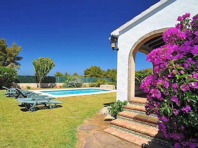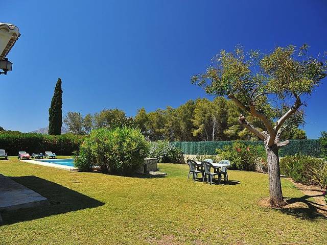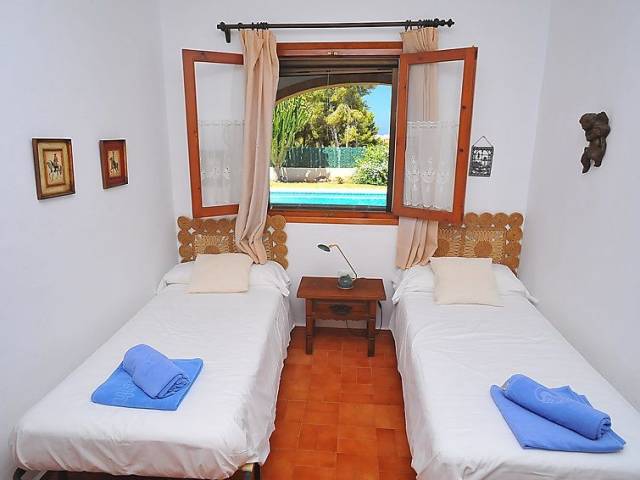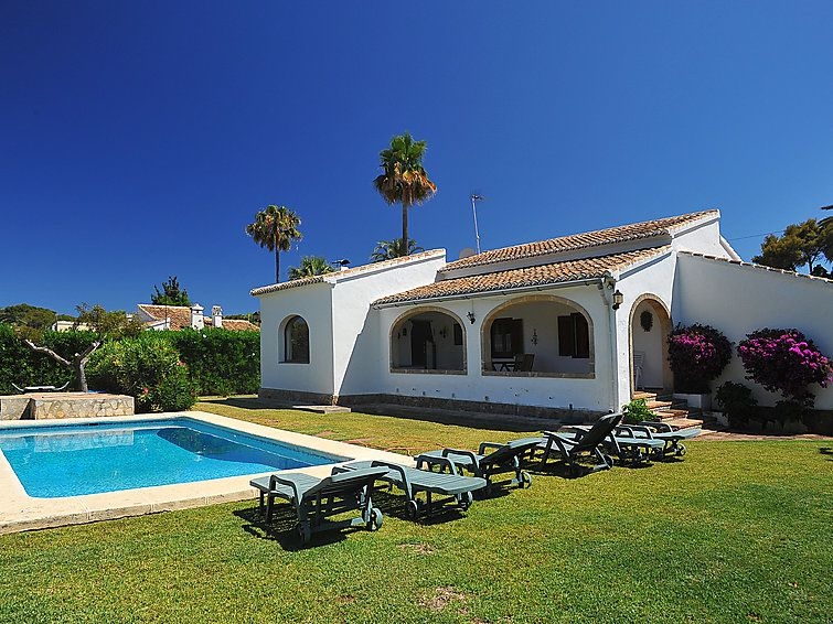 Casa "Henrys Choza". En el barrio de Adsubia, lugar tranquilo, soleado en un barrio residencial, a 1.3 km del mar, en una calle sin salida. Privado: jardín, cuidado 1'000 m2 (vallado) con césped y plantas, patio, piscina (4 x 8 m, Disponible por temporada: 01.Ene. - 31.Dic.) con escalera interior. Ducha exterior. Tienda 1.3 km, supermercado 800 m, restaurante 1.3 km, playa de arena "Arenal" 1.3 km. El propietario no acepta grupos de adolescentes/jóvenes. Casa 4 estancias 140 m2. Con mobiliario funcional: salón-comedor con chimenea, TV satélite y TV digital (pantalla plana), aire acondicionado. Salida al balcón cubierto. 1 dorm. con 1 cama de matrimonio (180 cm, 190 cm de longitud), baño/bidet/WC. 1 dorm. con 2 camas (80 cm, 180 cm de longitud). 1 dorm. con 2 camas (90 cm, 190 cm de longitud). Cocina (horno, X placas de vitrocerámica, microondas, congelador). Baño/bidet/WC. Calefacción eléctrica. Terraza grande 40 m2, cubierta. Muebles de terraza, barbacoa, tumbonas. Vista lejana al mar. El alojamiento dispone de: lavadora. Internet (Wifi, gratis). Garaje junto a la casa. A tener en cuenta: 1 mascota / perro. TV solamente DE, ES. AT-434481-A