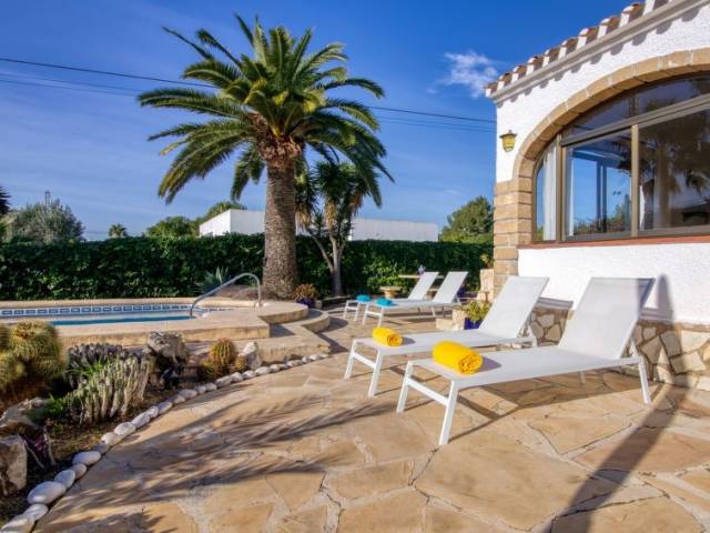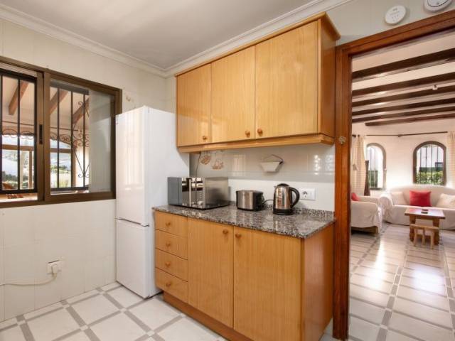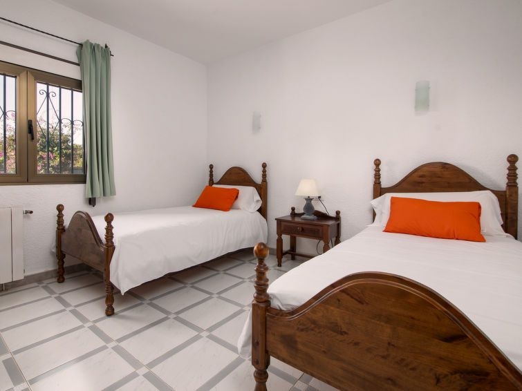 "Casa Florita", casa 3 estancias 120 m2. Con mobiliario sencillo y agradable: salón-comedor con TV satélite y ventilador. Salida al jardín, a la terraza, al balcón cubierto. 1 dorm. con 1 cama de matrimonio (140 cm, 190 cm de longitud), ducha/WC y ventilador. 1 dorm. con 2 camas (90 cm, 190 cm de longitud), ventilador. Cocina (4 fogones, horno, tostadora, microondas, congelador, cafetera eléctrica). Baño/bidet/WC. Ningún tipo de calefacción. Terraza grande. Muebles de terraza, barbacoa, porche. El alojamiento dispone de: lavadora, plancha, trona, cuna, secador de pelo. Internet (Wifi, gratis). Plaza de aparcamiento. A tener en cuenta: TV solamente EN, ES. VT-447391-A