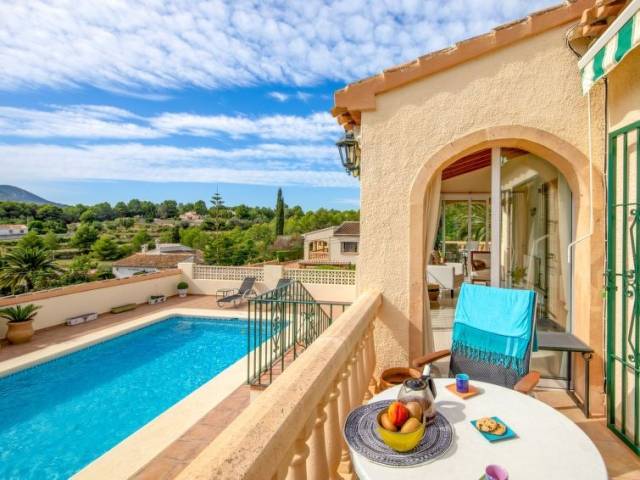 Casa "Isabelle", bonita, agradable de 2 plantas. En el barrio de La Colina, en la periferia, a 4 km del centro de Arenal Jávea, a 4 km del mar, a 4 km de la playa, orientación sur. Privado: jardín 1'000 m2 con plantas y árboles, piscina (4 x 8 m, 110 - 150 cm de profundidad, Disponible por temporada: 01.Ene. - 31.Dic.) con escalera interior. Ducha exterior, aparcamiento (para 3 coches). Tienda 3 km, restaurante 3 km, playa de arena "Arenal" 4 km. Escuela de surf 4 km, escuela de vela 4 km, tenis 3.8 km. A tener en cuenta: coche recomendable. Grupos de jóvenes sólo bajo petición.