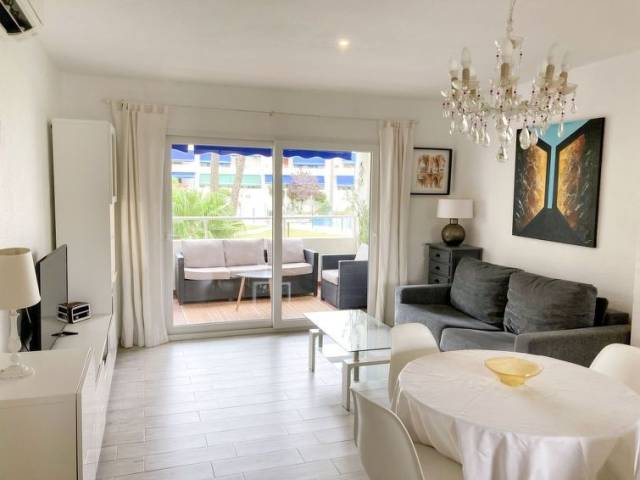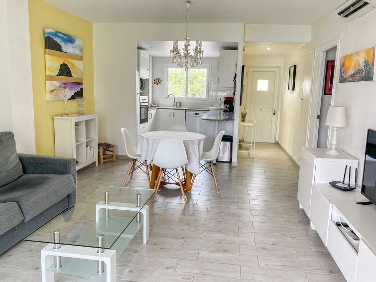 "Don Pepe", apartamento de 3 estancias en planta baja elevada. Con mobiliario confortable y bonito: salón-comedor con TV satélite y aire acondicionado. Salida a la terraza. 1 dorm. con 2 camas (90 cm, 190 cm de longitud), estufa eléctrica. 1 dorm. con 1 cama de matrimonio (140 cm, 200 cm de longitud), estufa eléctrica. Cocina abierta (lavavajillas, 3 placas de vitrocerámica, tostadora, microondas, congelador, cafetera eléctrica). Ducha/WC. El alojamiento dispone de: lavadora, cuna, secador de pelo. Internet (Wifi, gratis). Plaza de aparcamiento. A tener en cuenta: TV solamente FR, AL, ES. AT-473009-A